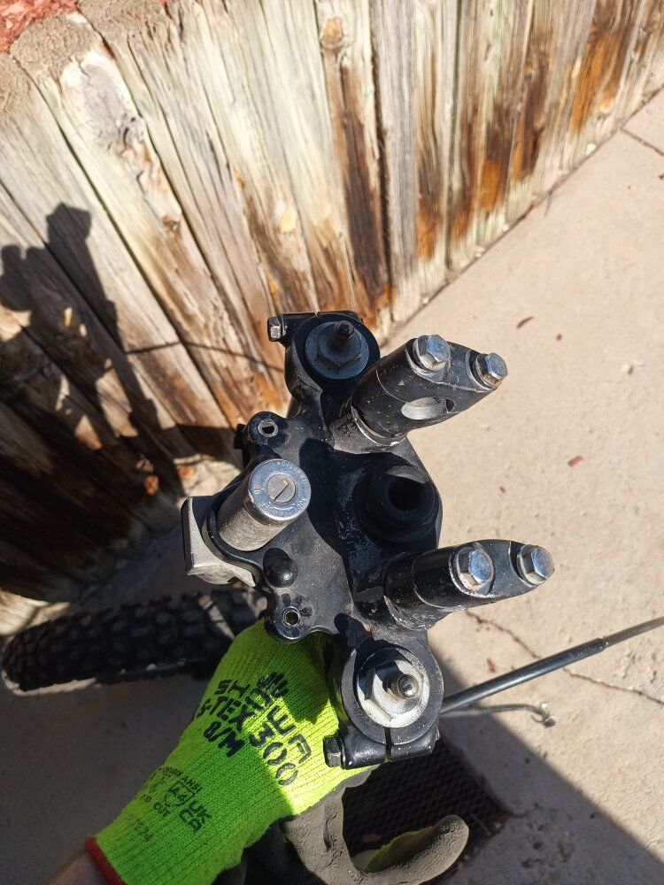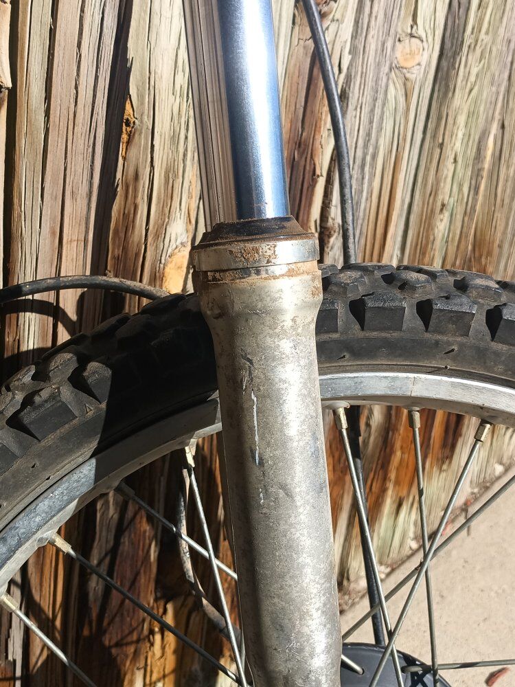VenmoThis front end seems to be in decent shape. It'll need a new tire and bearings. Also, the wheel shaft's threads are a little damaged. Send me an offer!