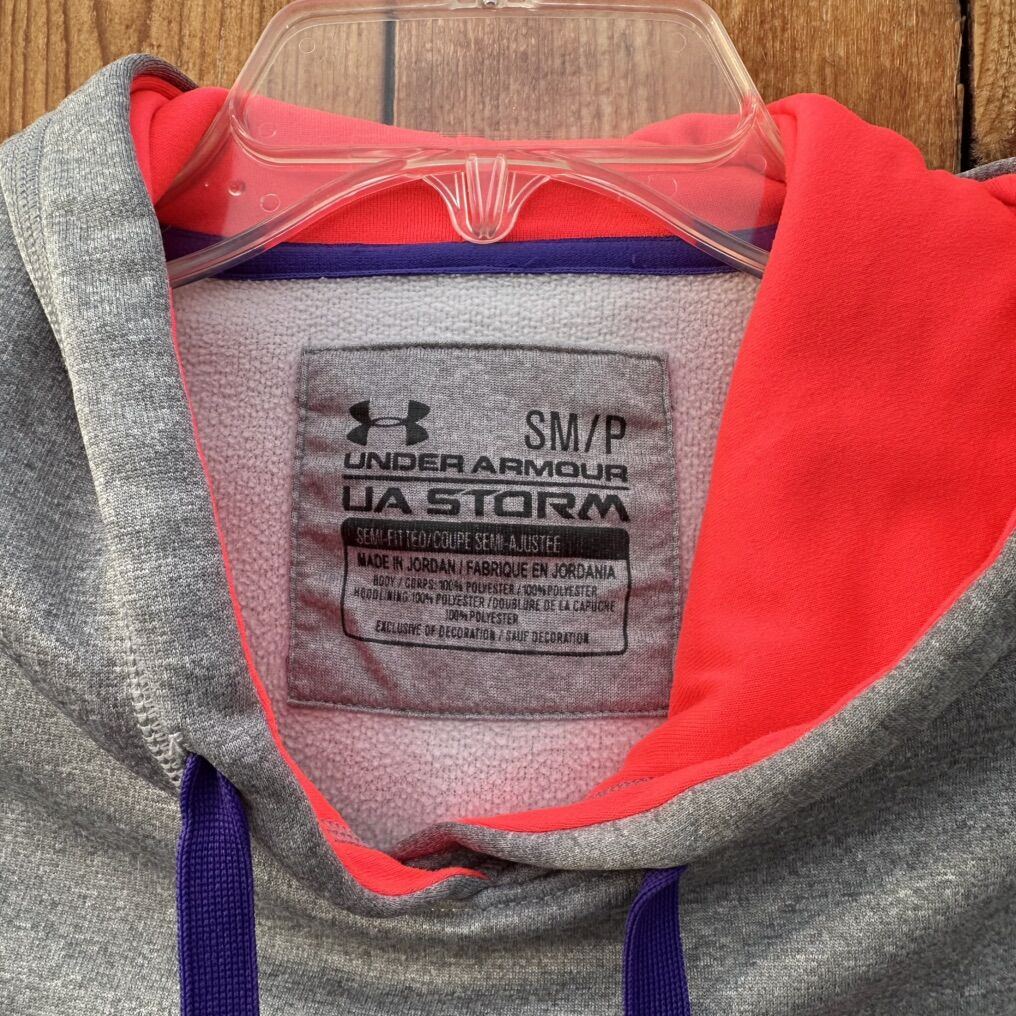 VenmoUnder Armour UA STORM Hoodie with Neon Pink Logo Color: Gray and Neon Pink Size: Small Great condition