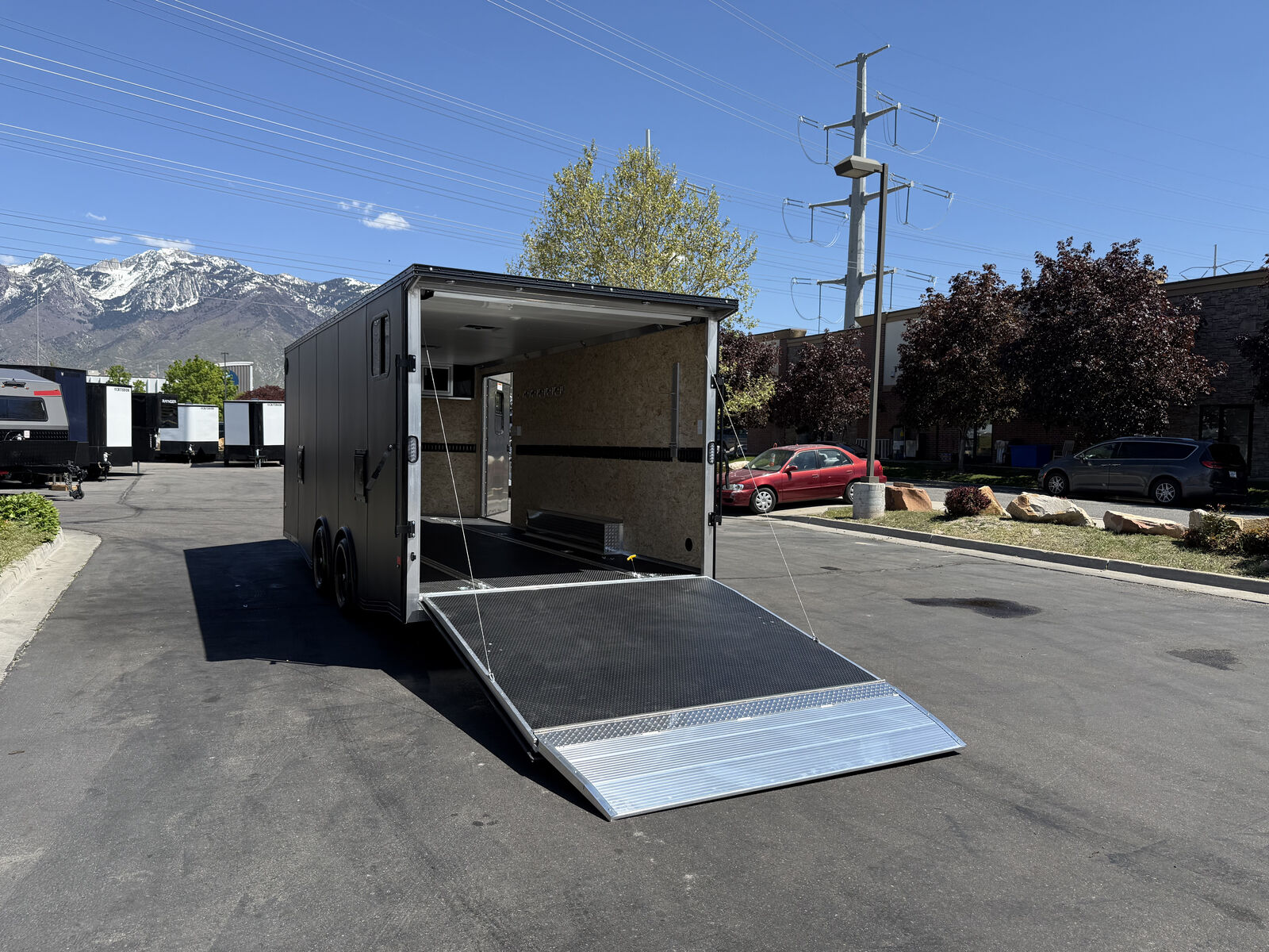 LIMITED TIME $251 A MONTH WITH ZERO DOWN WITH OUR SPECIAL LOCAL CREDIT UNION PARTNER!!! NO PRE PAYMENT-PENALTIES!!!EASY IN-HOUSE APPROVAL!!! Xpress 8.5x20 Ultra Premium Enclosed Toy Hauler/ATV/UTV/Car Hauler BLACKOUT. 4 YEAR WARRANTY!!! -All Aluminum Build -Screwless Exterior -Deep Cycle Marine Battery & Box -4 Foot Wide Side Access Door With Tinted Window -BLACKOUT Powder Coat Pkg Exterior Trim -Upgrade to Sloped 36" V-Nose -Spread Axle Upgrade (w/ Tapered Fender Skirting) -2x 5k# Torsion Axles: 9,980 GVWR -2x 14"x14" Fuel Doors w/ Paddle Handle -Rear Spoiler with LED Load Lights -Upgrade to Keyed Alike Locking Hasps -18"x24" Horizontal Radius Sliding Window w/ Screen (Roadside Rear)_ -2x 12V Powered Roof Vents -Powder Coated Aluminum Flip Down Step -Add 6" to Box Height (81 Inch Rear Entry Height, 84 Inch Interior Height) -2x Steel E-Track Surface-Mounted on Each Wall -2x Steel E-Track Surface-Mounted on Each Wall IN THE V-NOSE -Upper Aluminum Cabinets, Full Length and Depth -4' Coat Hook Package: (1) 4' Piece Slide Track (6) Sliding Hooks (Curbside Next to SAD Door) -4' Coat Hook Package: (1) 4' Piece Slide Track (6) Sliding Hooks (Roadside Across from Side Access Door) -Premium Luan White Finished Ceiling -Upgrade to TPO Coin Rubber Flooring -1x Fold-Down Padded Bench (48"L) Vertical Design (Roadside Across from Side Access Door) -Interior Elevated Spare Tire Mount (Curbside Rear) -Recessed LED "Puck" Light Package (8) Round LED Flush Mount Dome Lights (1) 12V Wall Switch -Floor Mounted Recessed Slide Track System: (PBF) (2) Full Length Tracks, (4) Sliding D-Rings -Add Aluminum Starter Flap to Rear Ramp -8x 5,000 Pound D-Rings (Evenly Spaced Throughout) -Insulated Walls and Ceiling -LED Scare Light (Porch Light) w/ 12V Wall Switch SB049225