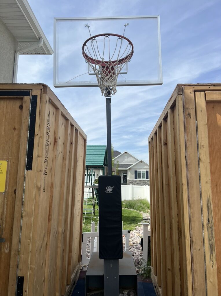VenmoBison Acrylic Adjustable Portable Basketball System Hoop. These are 4K plus when shipped to you. Needs a little tlc but still does the job. Going a different route with the side yard so I am selling it. Glass is cracked as pictured. I have the bottom pad but it does need a new plywood back. Would need a trailer for it to be moved. All info on it is attached in the link below. Open to offers.