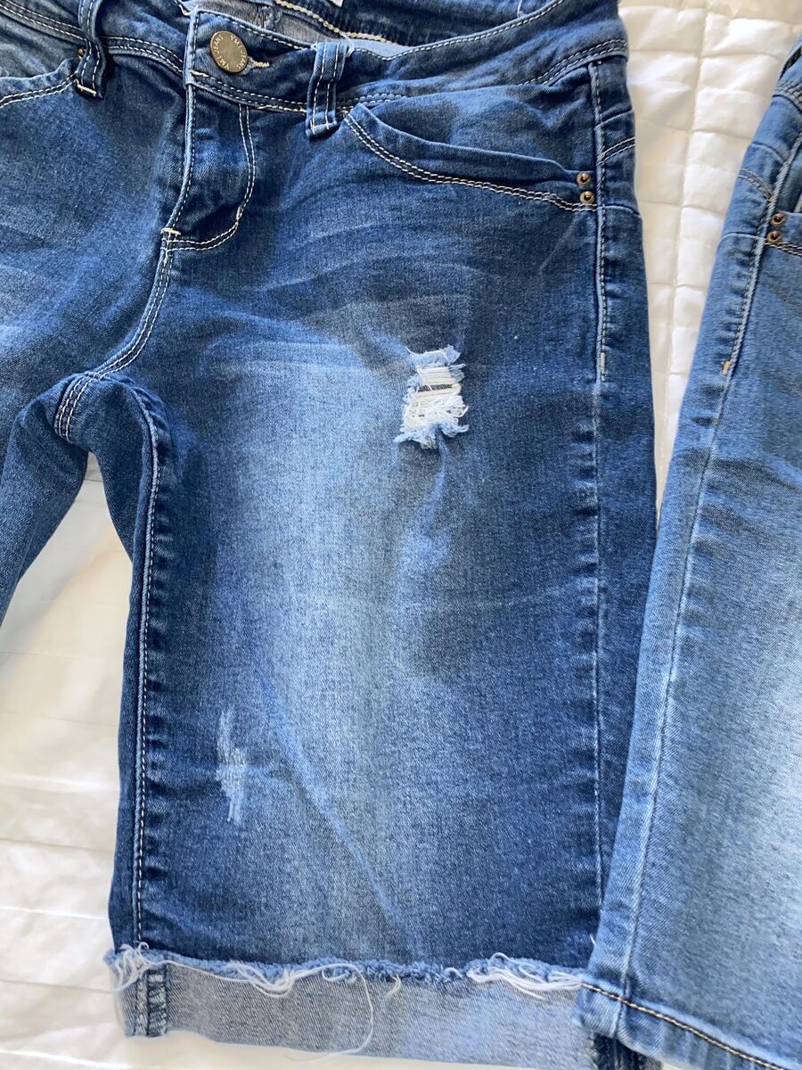 Bought at Dillards and they are in great preowned condition! 98% cotton and 2% spandex. Perfect amount of stretch! The other pair are sold.