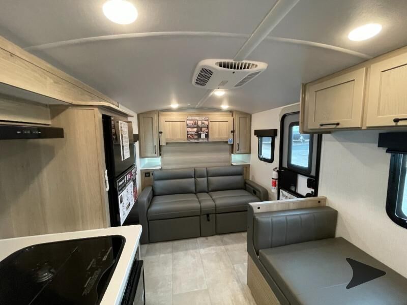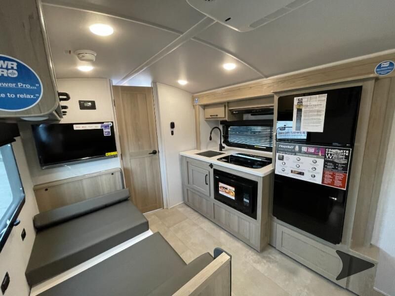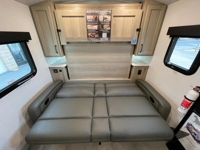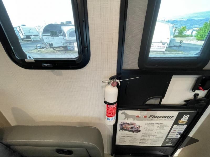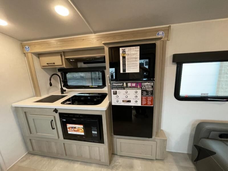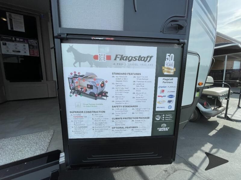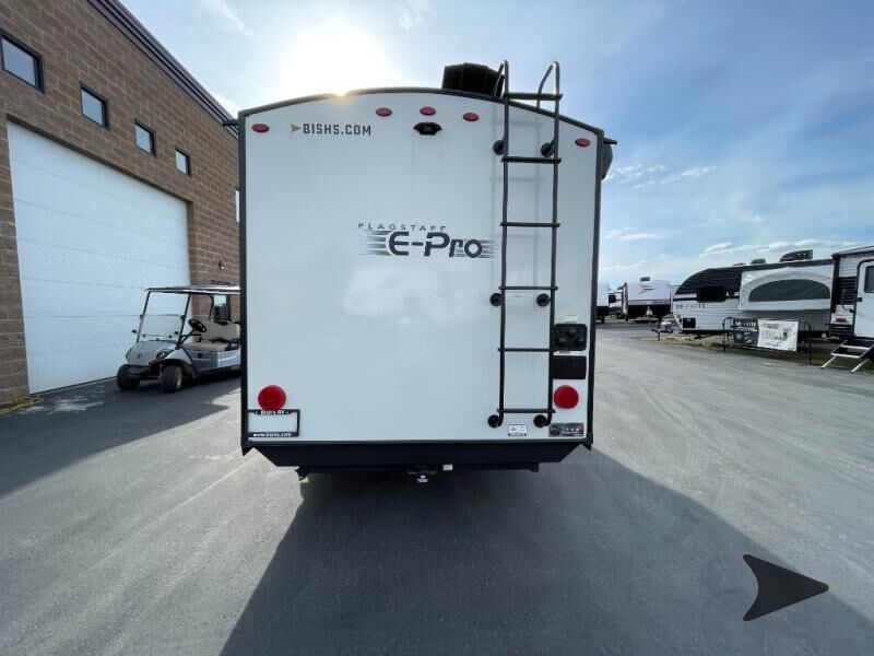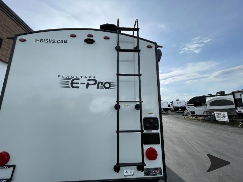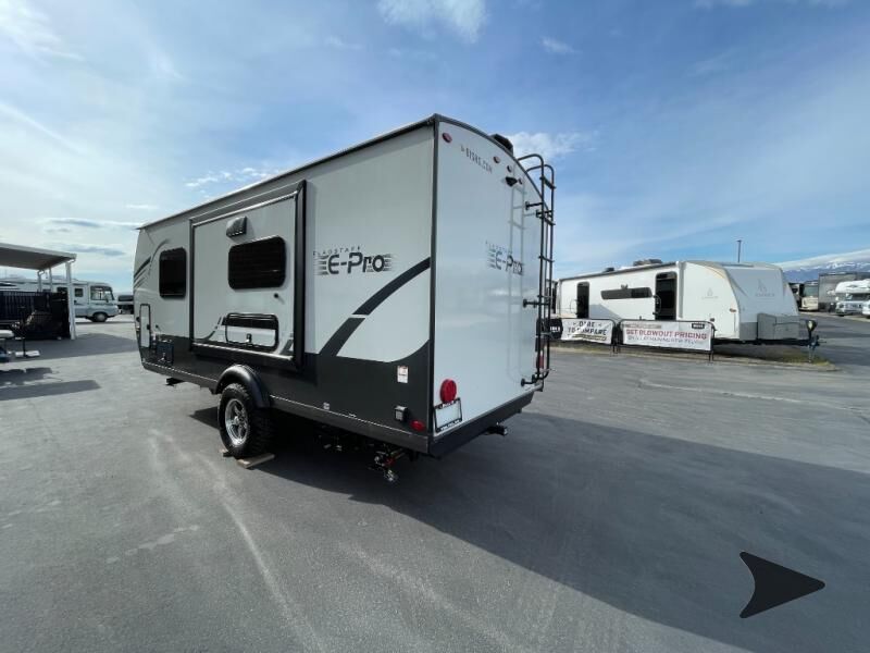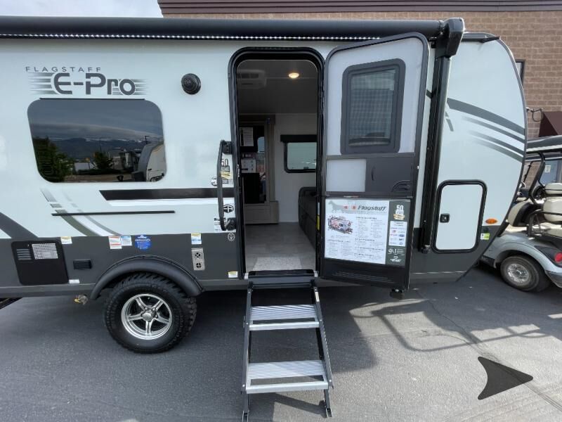 Forest River Flagstaff E-Pro travel trailer E19FDS highlights: Murphy Bed/Sofa Combo Single Slide Rear Bathroom Large Dinette Window Outside Griddle Camp with your favorite person in this trailer with the versatile Murphy bed/sofa combo up front giving you both a living area and a bedroom when you so choose. If you need sleeping space for one more, the dinette will provide that once easily setup. The large window gives you great views while dining or playing games. There is extra floor space in this trailer with the kitchen slide out that offers full amenities plus a sink to keep everything clean. And the full-length rear bathroom offers a spacious area to change your clothes in privacy and get cleaned up in the large shower. With any Flagstaff E-Pro travel trailer by Forest River, you will experience lightweight towing, style and features that will meet your needs, plus amenities that give you more than you expected! Built with interior and exterior composite sidewall construction, tongue and grove plywood flooring, and a vacuum laminated roof and walls, plus torsion axle, Rubber-Ryde suspension, and a tire pressure monitoring system for safety while traveling. And the 200 watt roof mount solar panel with 1,800-watt inverter will allow you to stay off-grid if you like. The interior offers a comfortable environment with the choice to use the air conditioner or furnace, and a 12V entertainment TV with a stereo to stay up to date on your favorite movies. Make your selection today!