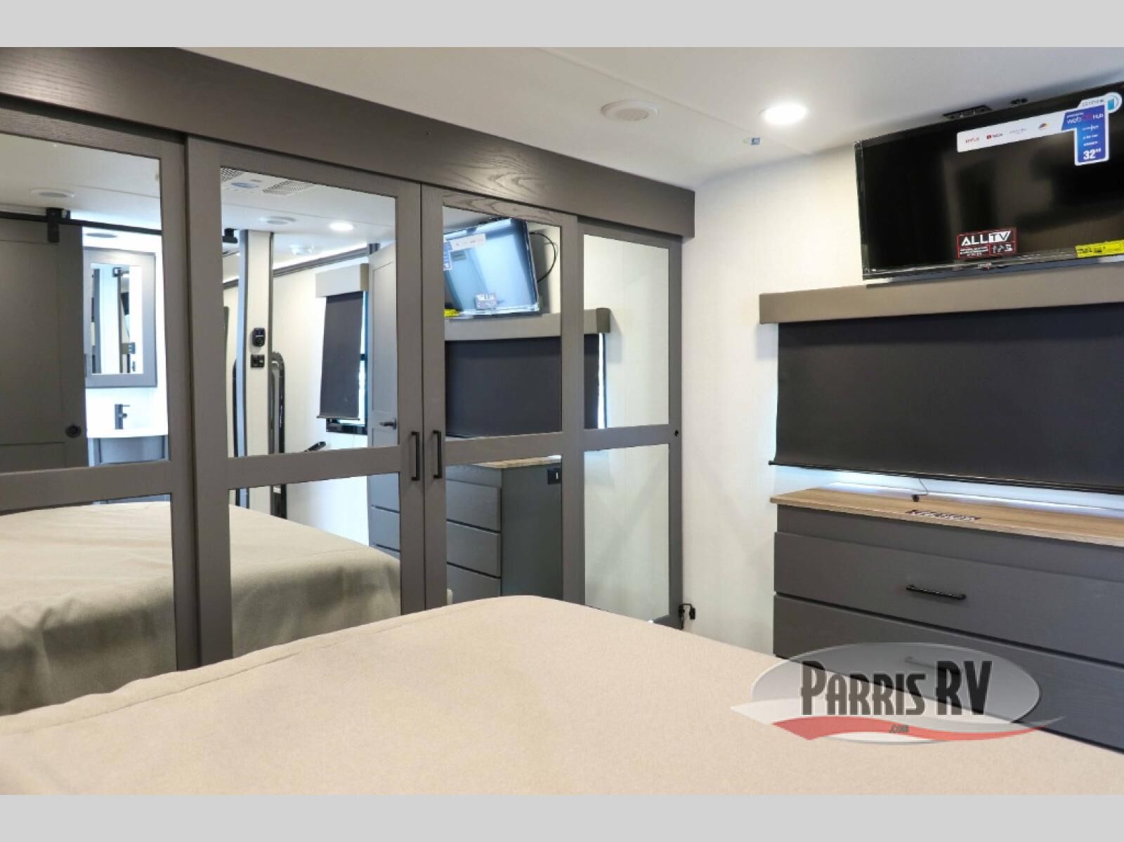 You can bring your toys with you wherever you go with any one of these Alliance RV Valor toy hauler fifth wheels! They are adventure-ready with a quality build from the walk on roof with seamless PVC roof covering to the commercial grade vinyl flooring and MorRyde CRE3000 suspension system. The Performance Running Gear package comes with a 101" wide-body benchmark chassis platform, 7,000 lb. Dexter axles, and a space enhancing drop frame storage compartment to pack in all your riding gear. You can even go off-gridding thanks to the Off the Grid Pack that has two 400 watt solar panels, generator prep, a 40 amp charge controller, and a 100 amp hour lithium iron phosphate battery. Some of the interior comforts you will enjoy are the hardwood cabinet doors and drawers, solid surface kitchen countertops, and commercial grade vinyl flooring with no carpet to make clean up a breeze. The Valor toy haulers are also the Masters of 12 Volt with USB charging station throughout, a stainless steel refrigerator, and more 12 volt features to make camping hassle-free!