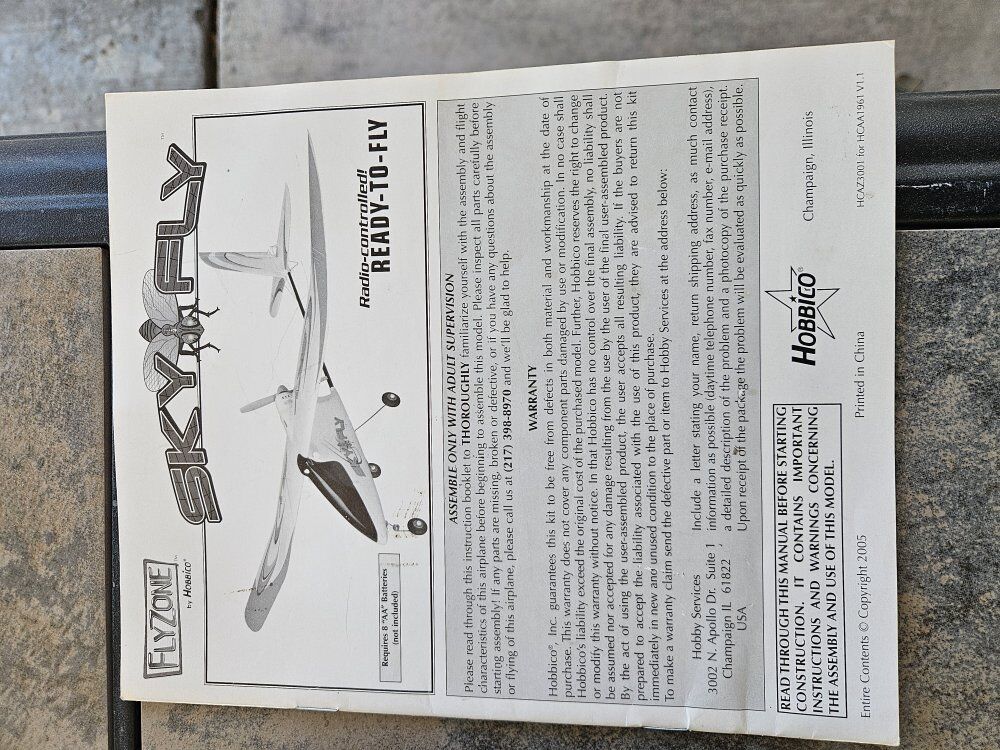 fly zone by hobbico, Electric plane. 3 channel Fm. ready to fly complete with battery @ radio, trike gear and pusher prop.