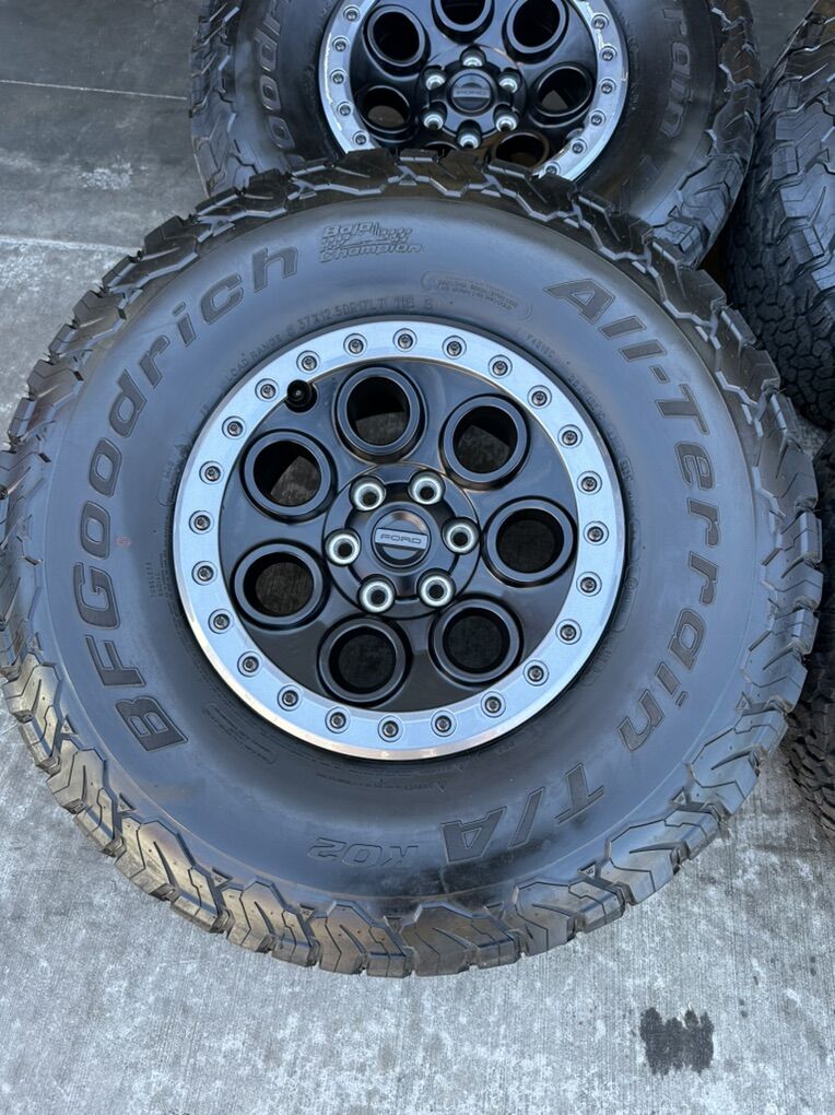 6x135 Ford raptor 37 edition oem beadlock wheels & 37x12.5r17 Bfgoodrich all terrains.