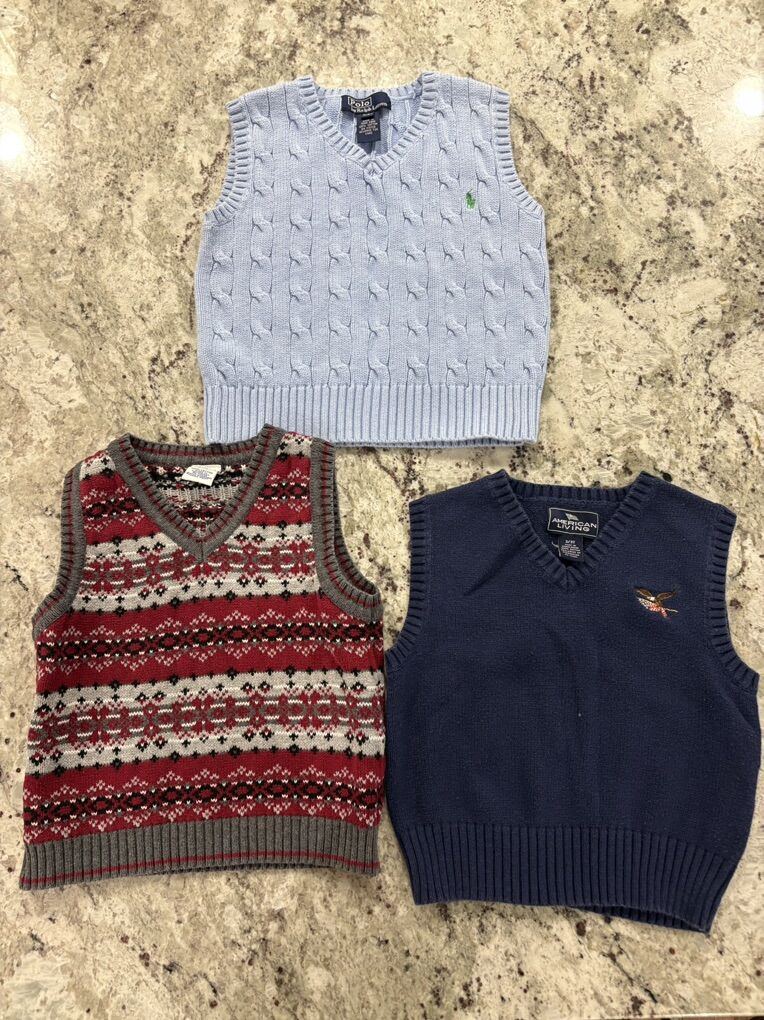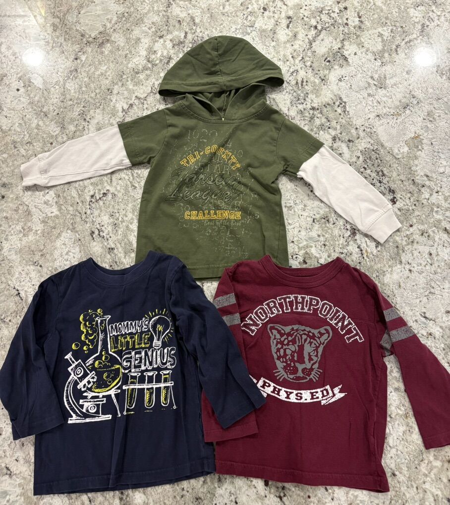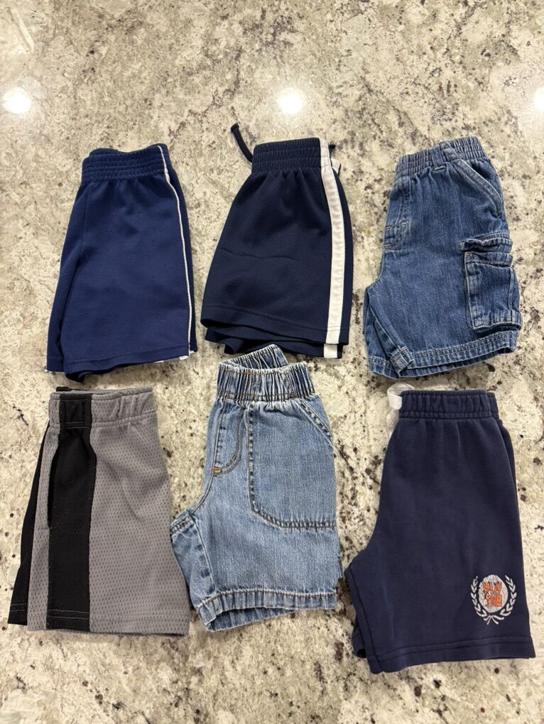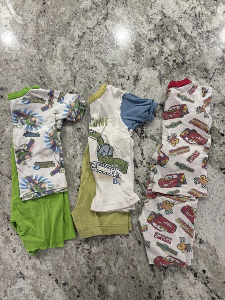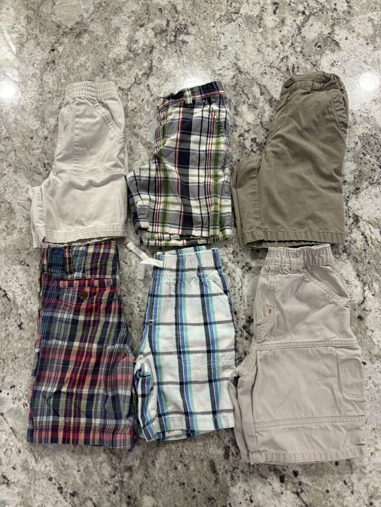 2 Belts 2 Hats 2 Jackets 2 Swimming Suits 2 Swimming Towel Covers 7 Long Sleeve Shirts 3 Sweater Vests 13 Short Sleeve Shirts 13 Shorts 1 Sweater 10 PJs 4 slack pants 2 Levi Pants 8 Sweatpants (Some have holes in the knees & could be cut into shorts)