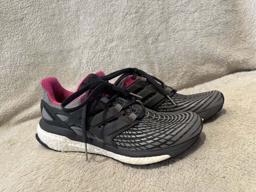 Adidas women’s size 8.5 gray and black with hot pink lining/trim. These are great for a walking or running and in good condition. See photos for details. I take cash or Venmo, but cash is preferred. Text is best. 801-201-4446. Check out my other ads for additional sizes and styles.