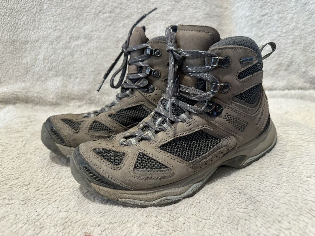 Vasque women’s size 7.5 gray and light brown mesh and leather Gore-Tex mid hiking boots. These are in good condition, see photos for details. I take cash or Venmo, but cash is preferred. Text is best. 801-2014446. Check out my other ads for additional sizes and styles.