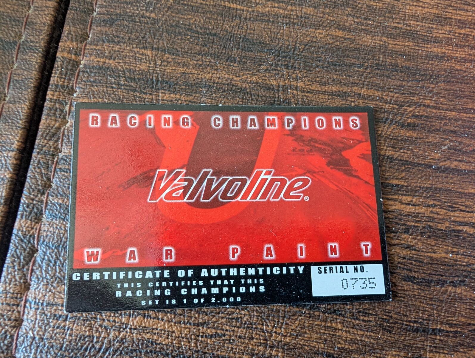 PayPalDelve into the world of NASCAR with the Racing Champions War Paint 2000 First Production Run Mark Martin Valvoline Ford. This 1:64 scale replica captures the essence of the iconic driver and his legendary Valvoline team, memorializing a momentous year in racing history with the Tide Pod 200. Crafted with precision by Racing Champions, this collectible highlights the Ford vehicle make that has been a staple on the NASCAR circuit. Whether you're a diecast enthusiast or a dedicated NASCAR fan, this model is a must-have addition to your collection, celebrating the legacy of Mark Martin and the rich heritage of the sport. 2 cars one War Paint and one regular. 10 dollars or best offer. Will ship world wide. Seen on the hit show Storage Wars!!
