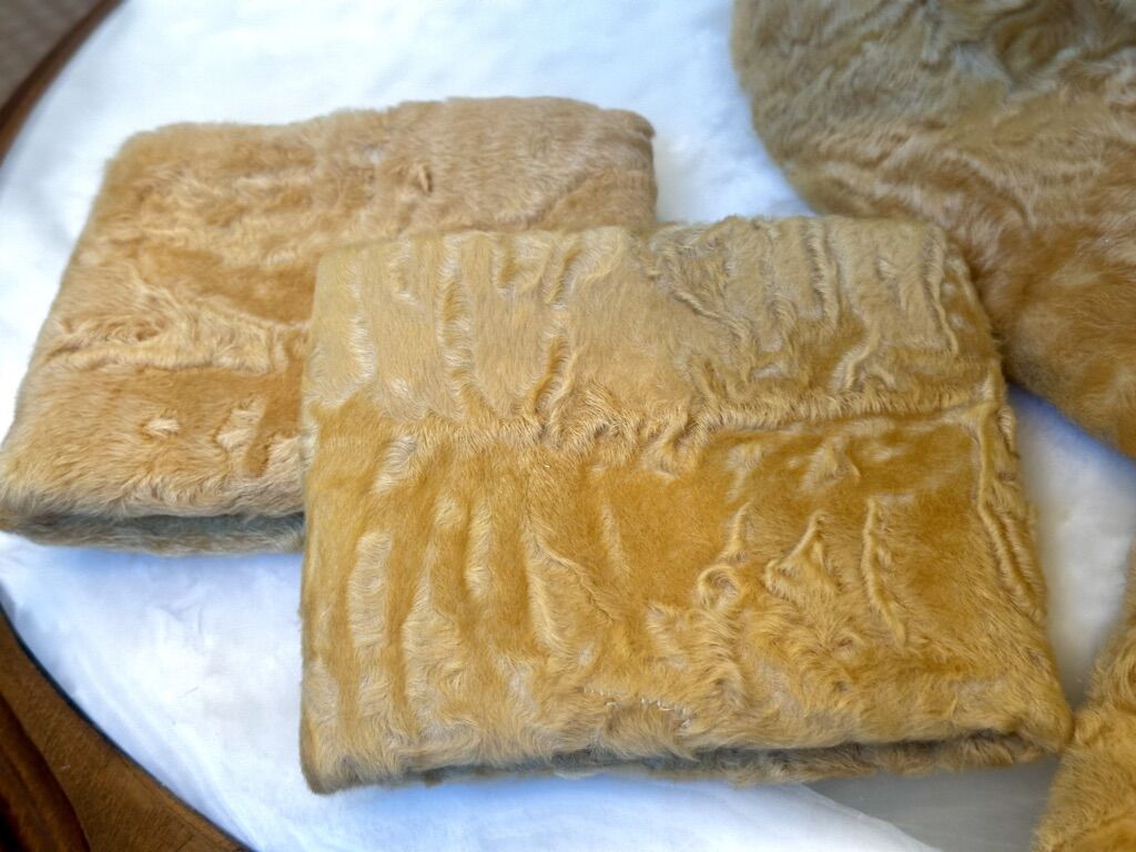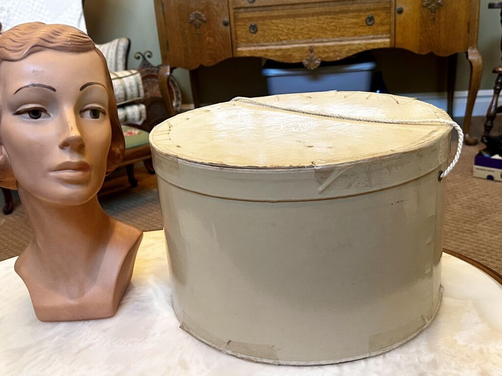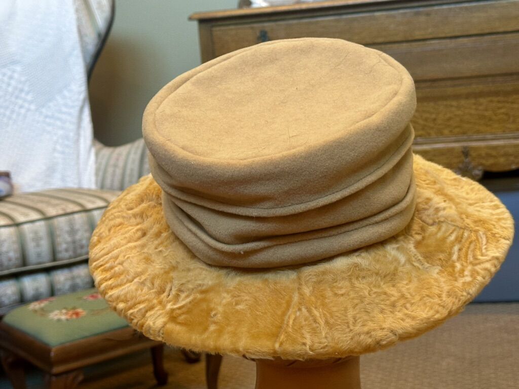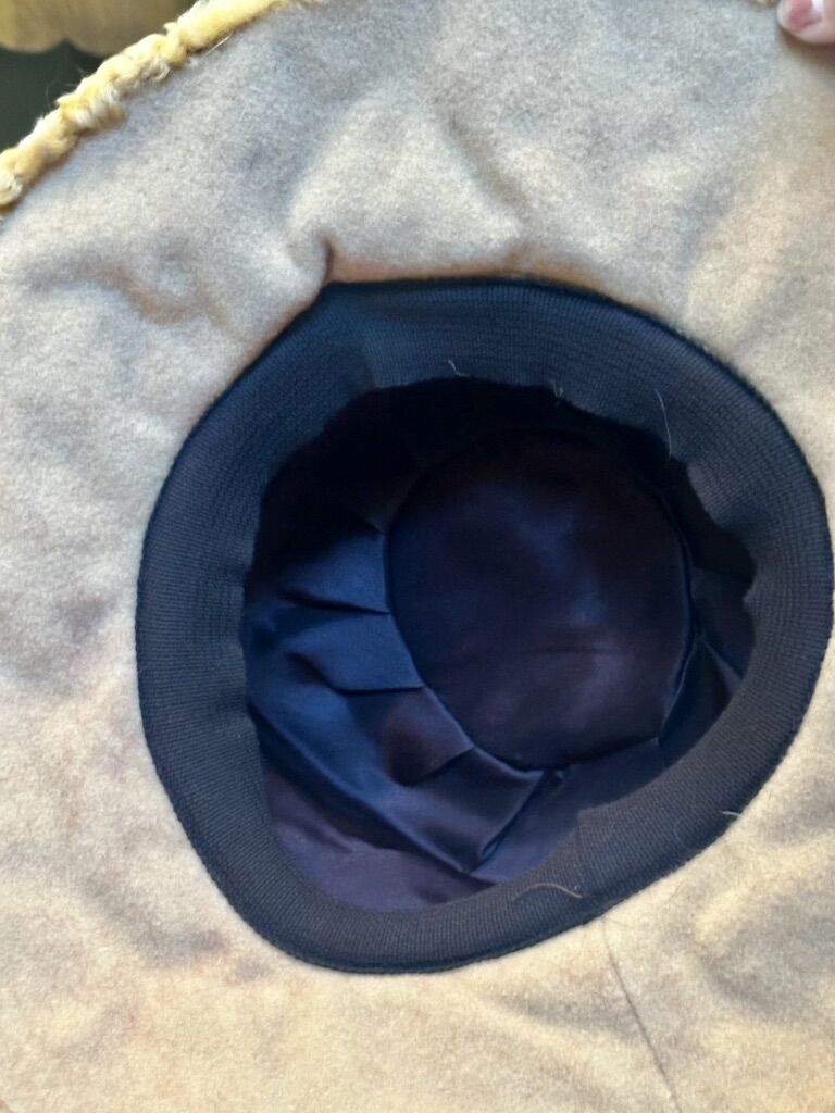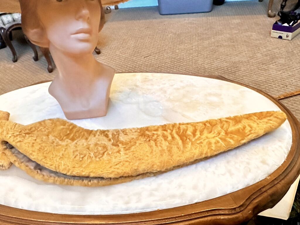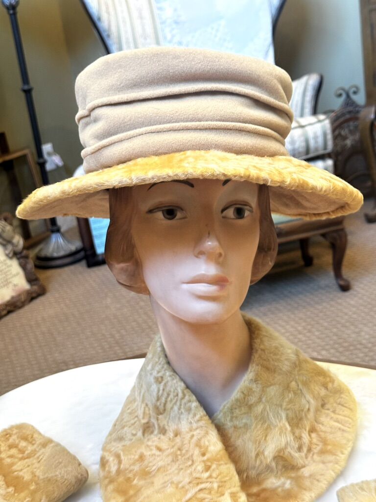 Not sure what the fur is but very soft with silk lining. Make a fashion statement with these gorgeous Antique accessories. Comes in a Sam’s Fifth Avenue Hat Box. Mannequin head not included