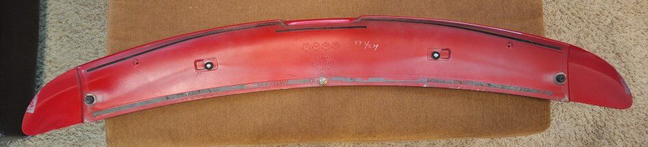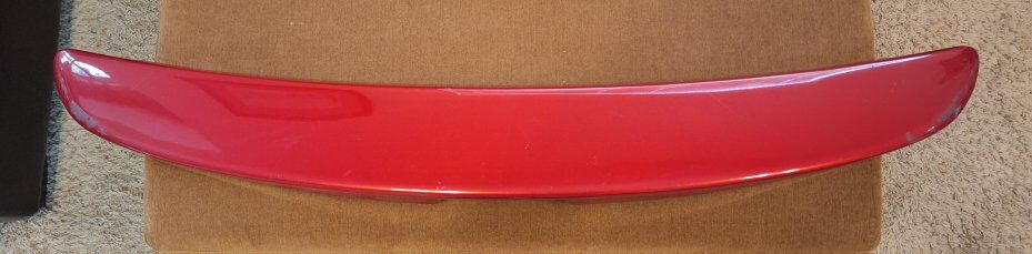 Factory original Mazdaspeed Miata spoiler in excellent shape. Painted Velocity Red, 9/10. Includes mounting hardware. There is tape residue in a few places that will need to be removed. This will fit any NB Miata 99-05.