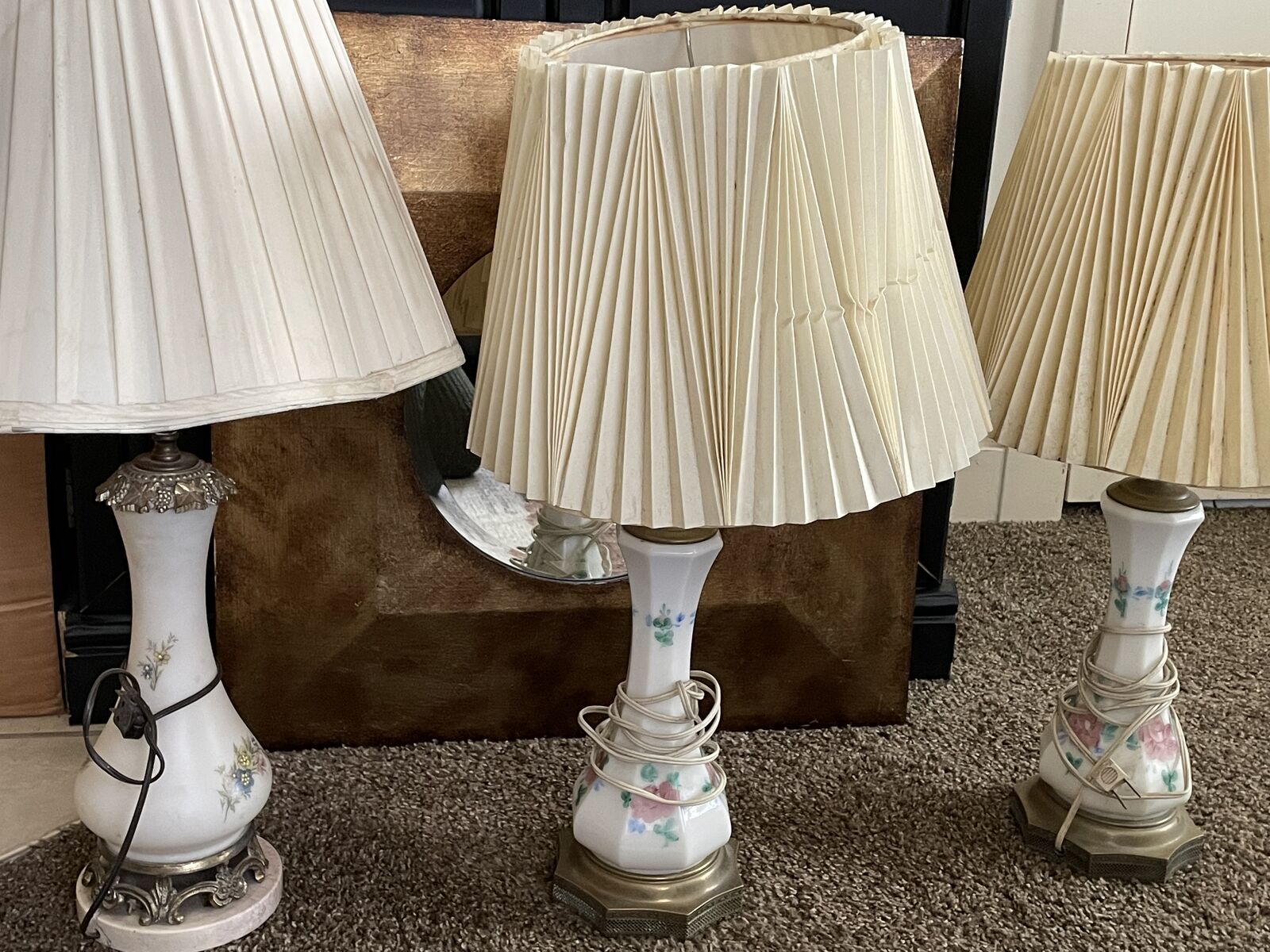 Set of 3 Antique porcelain lamps. Approximately more than 75 years old. (2) of the lamps need new shades. $60