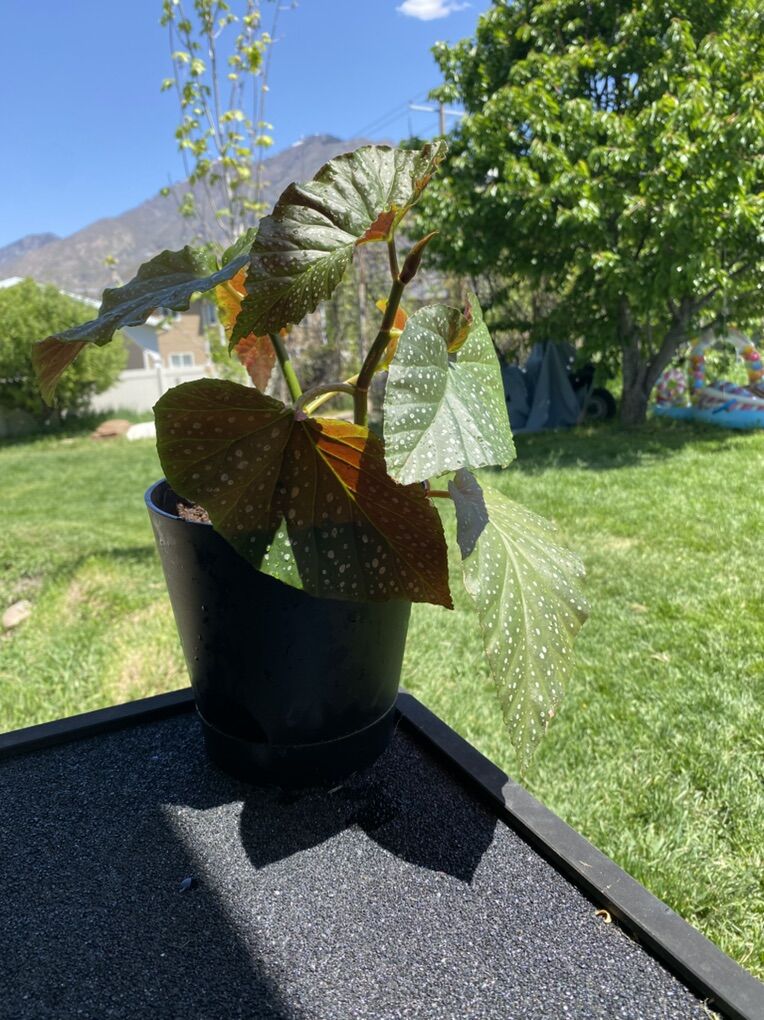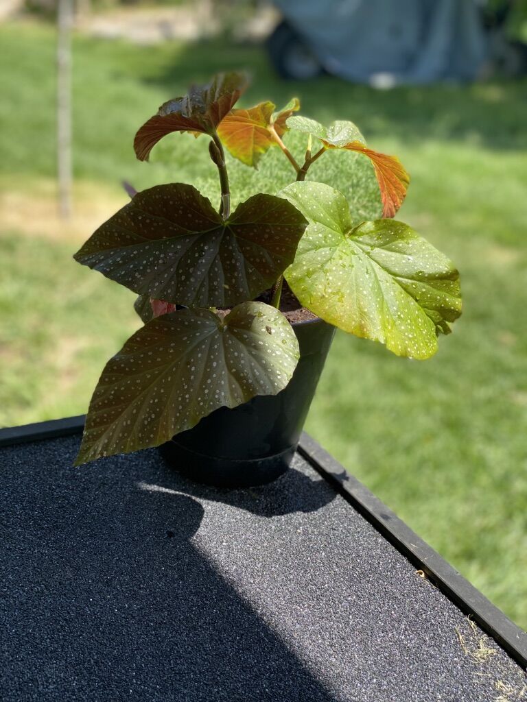 ZelleGorgeous Angel Wing Begonia or Polka Dot Spotted Begonia house plant. Known for its deep green leaves, red blush under leaves and silvery polka dot spots, this house plant is a stunning addition to your collection or a great one to start off your house plant collection. Easy to keep alive and a quick grower.