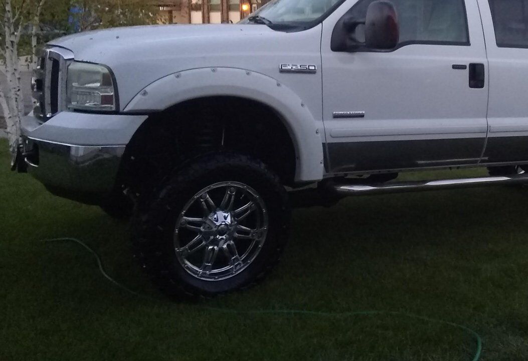 VenmoI have 4 35x12.5x20 Ironman MT tires on some fuel chrome rims for sale. came off my 2006 Ford f250. 8 lug. I originally kept them for winter tires but didn't use them and I'd rather them get used. tires got a little over 1/4 inch tread on them. wheels need a little tlc but they clean up pretty good. $600 text if interested 801 882 8744