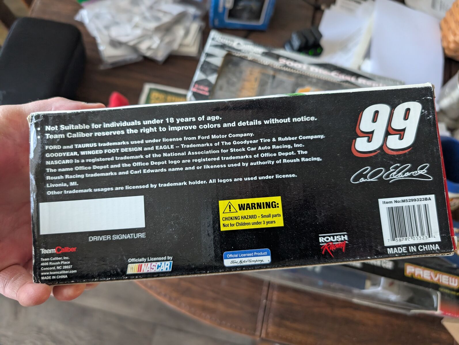 PayPalCapture a piece of NASCAR history with the 2005 Carl Edwards #99 Office Depot Ford Taurus, a 1:24 scale diecast replica that's a must-have for racing enthusiasts and collectors alike. This limited edition model showcases the iconic design of the Office Depot car, driven by the talented Carl Edwards and fielded by the renowned Roush Racing team, capturing the essence of speed and precision associated with NASCAR. The detailed craftsmanship of Team Caliber brings this Ford Taurus to life, complete with authentic branding and racing aesthetics. It's a standout piece that commemorates the 2005 racing season and is a tribute to the legacy of both the driver and the sport. Whether displayed on a shelf or used as a centerpiece in a display, this model is a striking representation of NASCAR's golden era. 10 dollars or best offer. Will ship world wide.