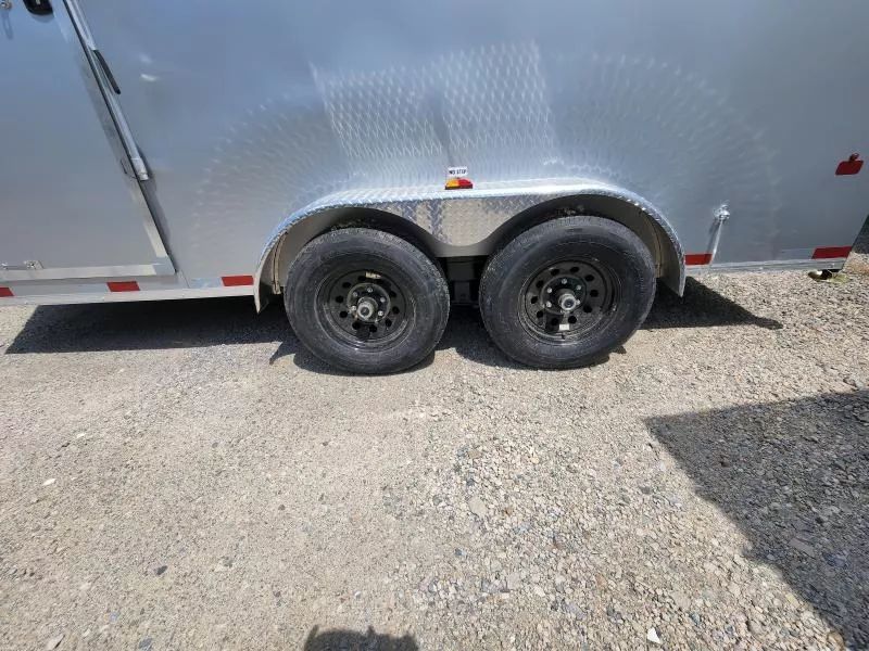 Stock #: SL3935 Trailer Specs: Color: Silver .030 Bonded Aluminum Overall: Length: 17'10" Width: 8'6" Height: 9'0" Interior/Bed: Length: 14' Box + V-Nose Width: 6'8" Height: 7'0" Door/Ramp: Rear Barn Door (Width: 72" x Height: 80") Weight: 2,421 lbs. GVWR: 11,464 lbs. Payload: 9,043 lbs. Axle(s): 5,200 lb. Lippert Spring Electric Axle w/ EZ Lube Hubs Tire/Wheel: ST225/75R15 Load Range C Coupler: Type: Bumper Pull Size 2 5/16" 7-Way 12V Connector 16" OC Vertical Posts 16" OC Crossmembers 24" OC Tube Roof Bows Standard Features: HSS Structural Tubing Steel Frame Side Man Door (28" wide x 77" tall) 3/8 Plywood Interior Walls 3/4" Plywood Floor Enclosed Wiring Interior Lights w/ Wall Switch Automotive Style Undercoating 24" Diamond Plate Rock Guard Electric Breakaway Kit Side Cross Flow Vents Aluminum Diamond Plate Fenders Common Addons: Wall Mounted Spare Tire 10 ft. E-Track Stick Recessed 2,500# D-Ring Additional Colors Available Call for Availability Over 2,000 trailers in stock at Wasatch Trailer Sales! With three convenient Utah locations - Layton, Springville, and Hurricane - finding the perfect trailer has never been easier. We offer one of the largest inventories around, backed by quality you can trust, superior value, and unparalleled pricing. Don't see exactly what you need? Call or text 801-528-1581 - with 20+ top manufacturers and easy financing, we'll get you on the road fast! Whatever you haul, we've got the right trailer - in stock year-round! Though we make every possible effort to ensure that our specs, photos, prices and descriptions are 100% correct and accurate on every trailer, due to our vast ever-changing inventory, there is always room for human error. We reserve the right to correct/change any error in trailer descriptions, specifications and prices WASATCH TRAILER SALES - LARGEST TRAILER SELECTION IN UTAH Springville: (801) 528-1581 1180 S 2000 W, Springville UT, 84663 View More Inventory: www.wasatchtrailer.com