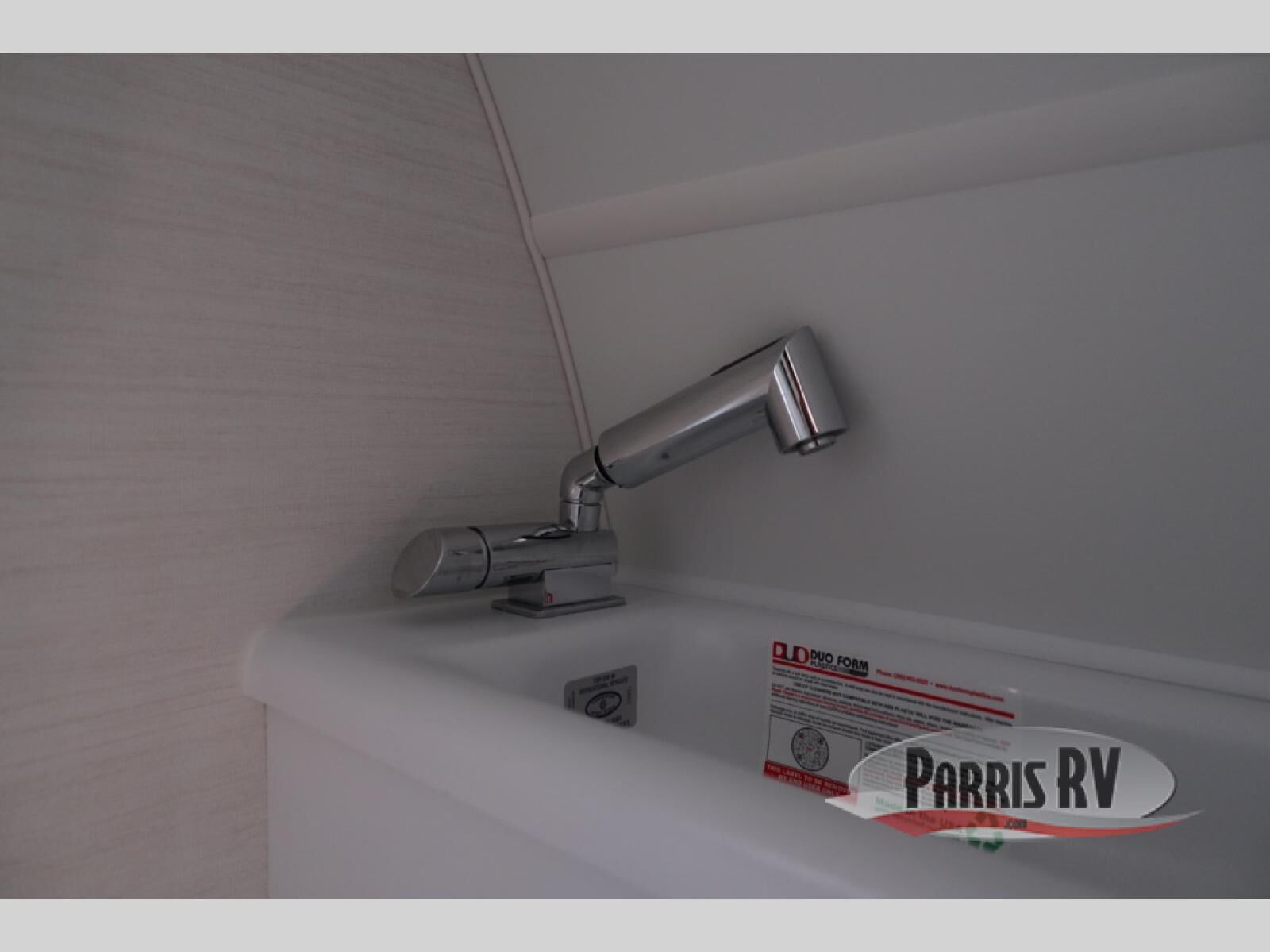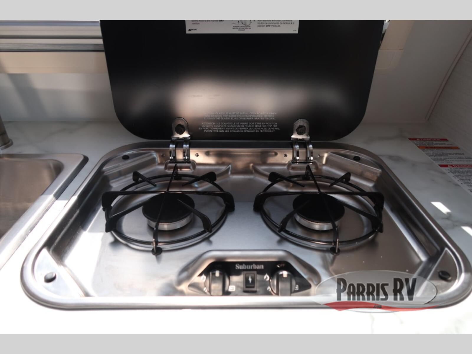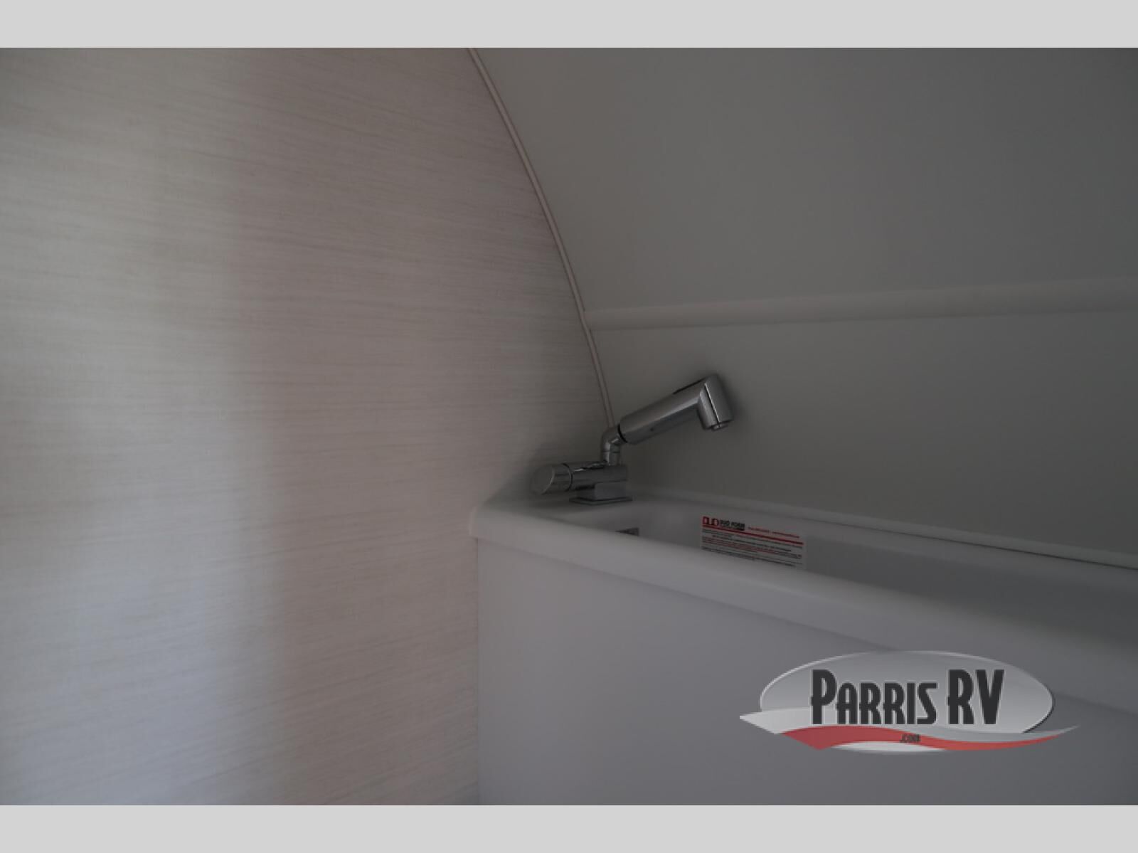 Hitch up and go at the drop of a hat with this cozy teardrop trailer! You will love how easy it will be to tow this unit, and you'll be surprised to find everything you need for hassle-free camping trips. An expandable split bed/dinette provides a place to relax, eat and sleep, and a two burner stove with a glass top will let you make meals inside when you don't want to cook over the campfire. You can choose to add an optional microwave for even more convenience, and the standard 12V compressor refrigerator will keep your cold items fresh. Easily freshen up each day in the wet bath that includes a cassette toilet with a molded sink.