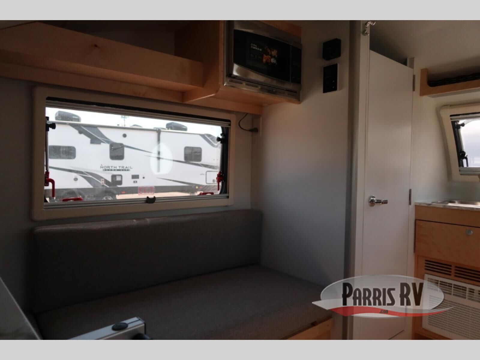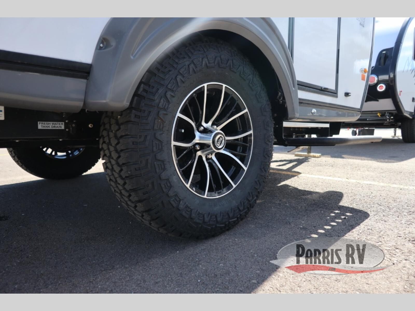 The TAB 320 LITE teardrop trailer by nuCamp RV offers a simple, more affordable, and more approachable way of camping. There is a molded underbelly shield, alloy wheels, aggressive off-road tires, plus Boondock molded fenders and a Boondock entry door handle and step. A front diamond plate storage tub will keep your camp gear secure, and a 180-watt solar panel will provide off-grid capabilities. This teardrop trailer features an LP furnace and an A/C unit, along with an LP water heater for added comfort. Inside, you will love the premium soft-close cabinetry, composite flooring, side porthole windows, and front window for great outdoor views.