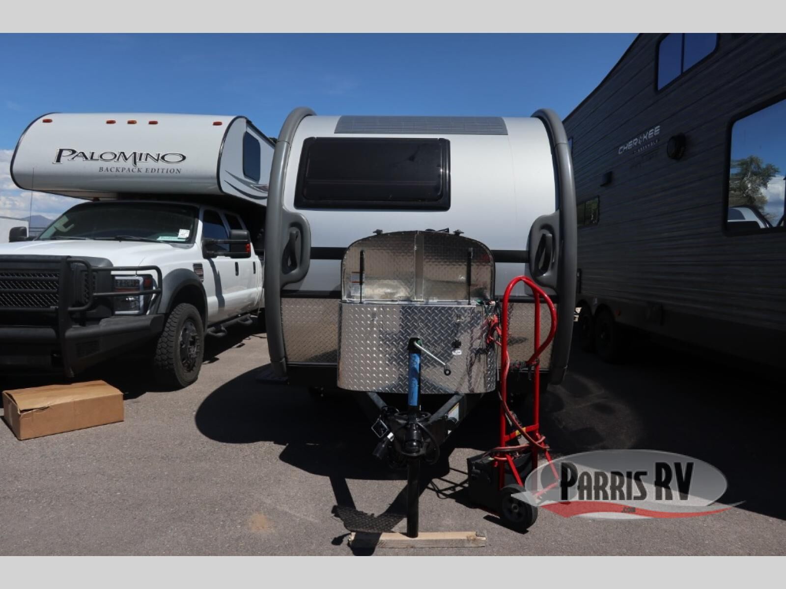 The TAB 320 LITE teardrop trailer by nuCamp RV offers a simple, more affordable, and more approachable way of camping. There is a molded underbelly shield, alloy wheels, aggressive off-road tires, plus Boondock molded fenders and a Boondock entry door handle and step. A front diamond plate storage tub will keep your camp gear secure, and a 180-watt solar panel will provide off-grid capabilities. This teardrop trailer features an LP furnace and an A/C unit, along with an LP water heater for added comfort. Inside, you will love the premium soft-close cabinetry, composite flooring, side porthole windows, and front window for great outdoor views.