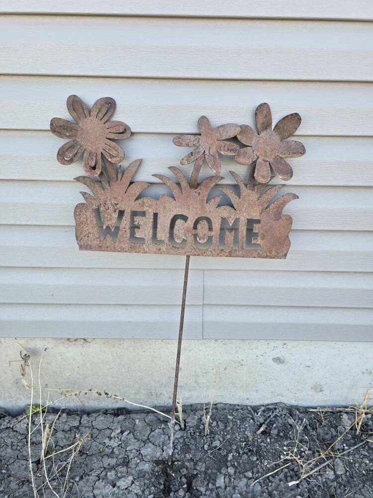 metal yard welcome sign.