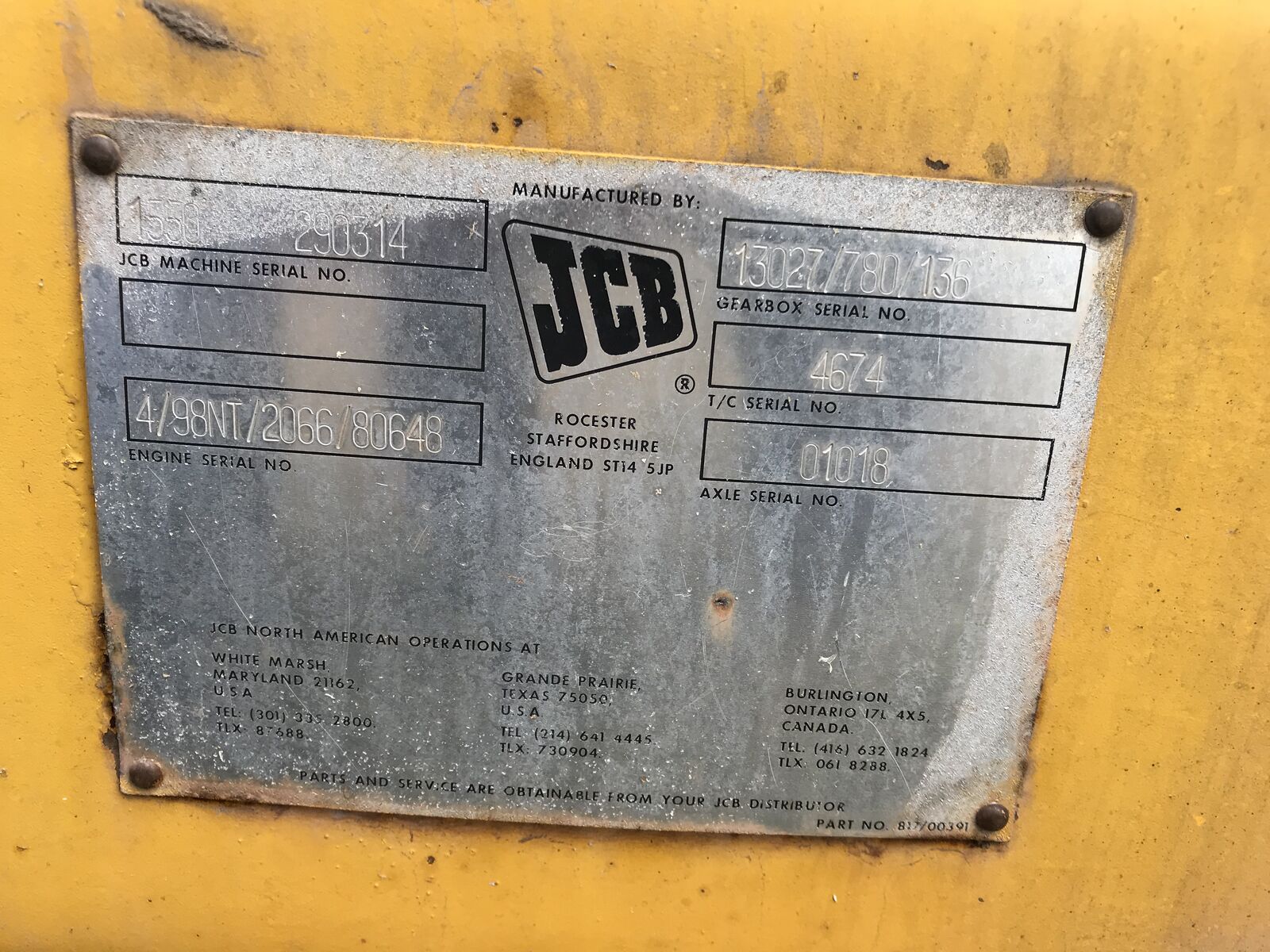 ZelleJCB 1550B BACKHOE Front End Loader Needs a little work, Engine has a rod though it. OTherwise fairly decent condition.