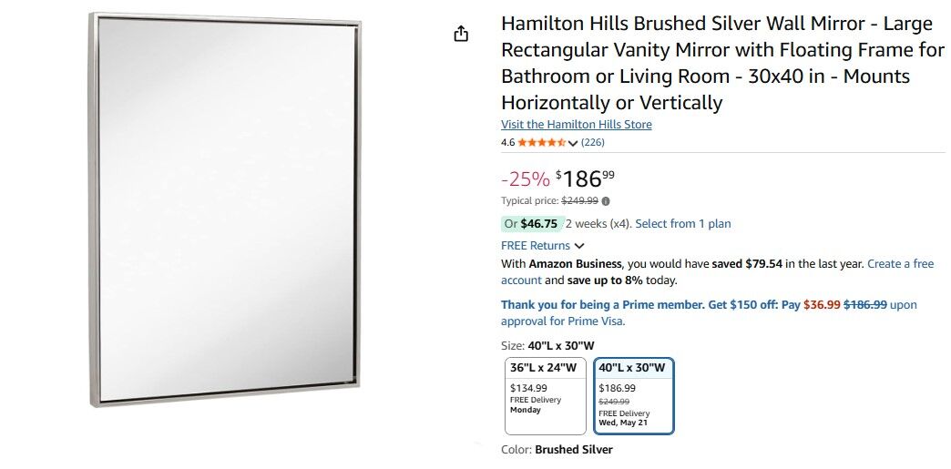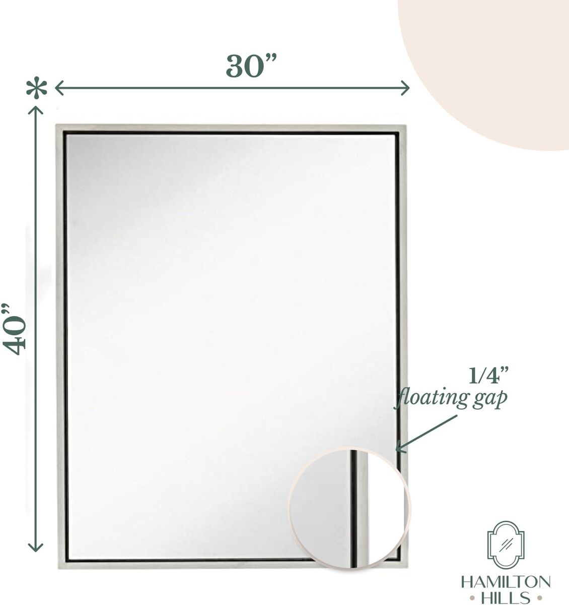 About this item - Modern and Stylish Design: This 30x40 inch brushed silver vanity mirror features a sleek floating glass design with a 2-inch metal frame. Its clean, contemporary look adds sophistication to any space