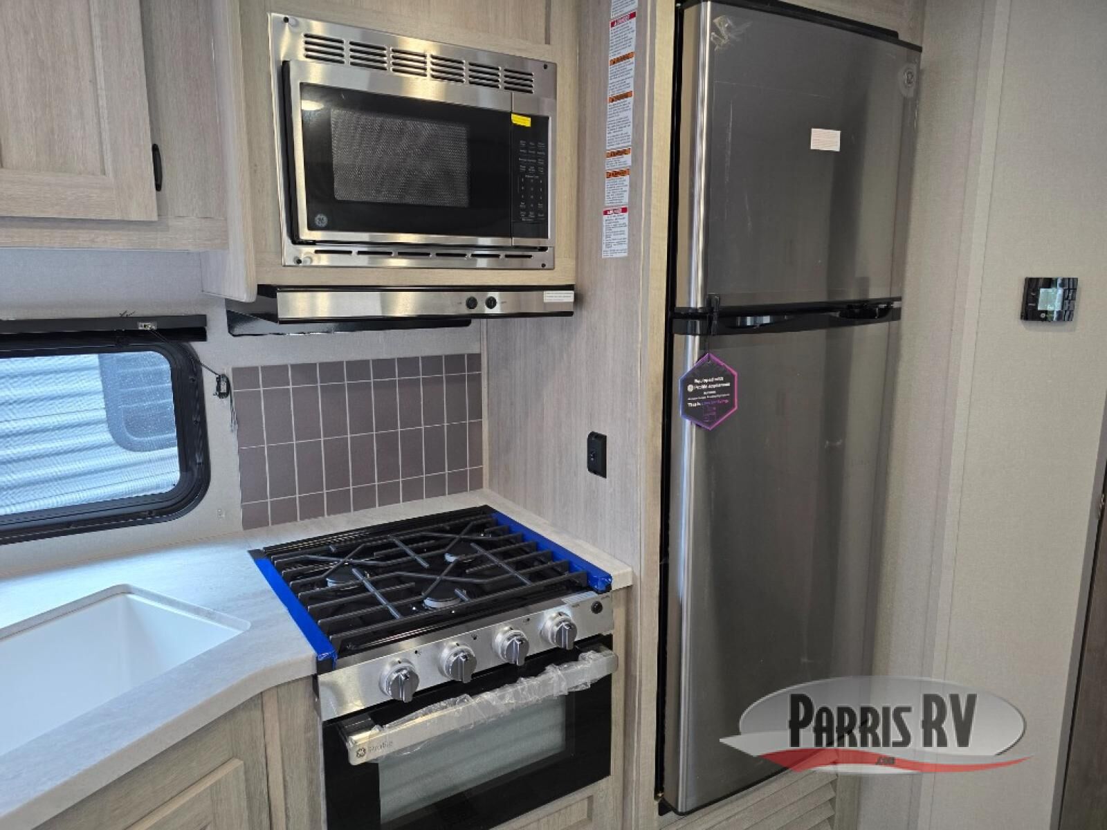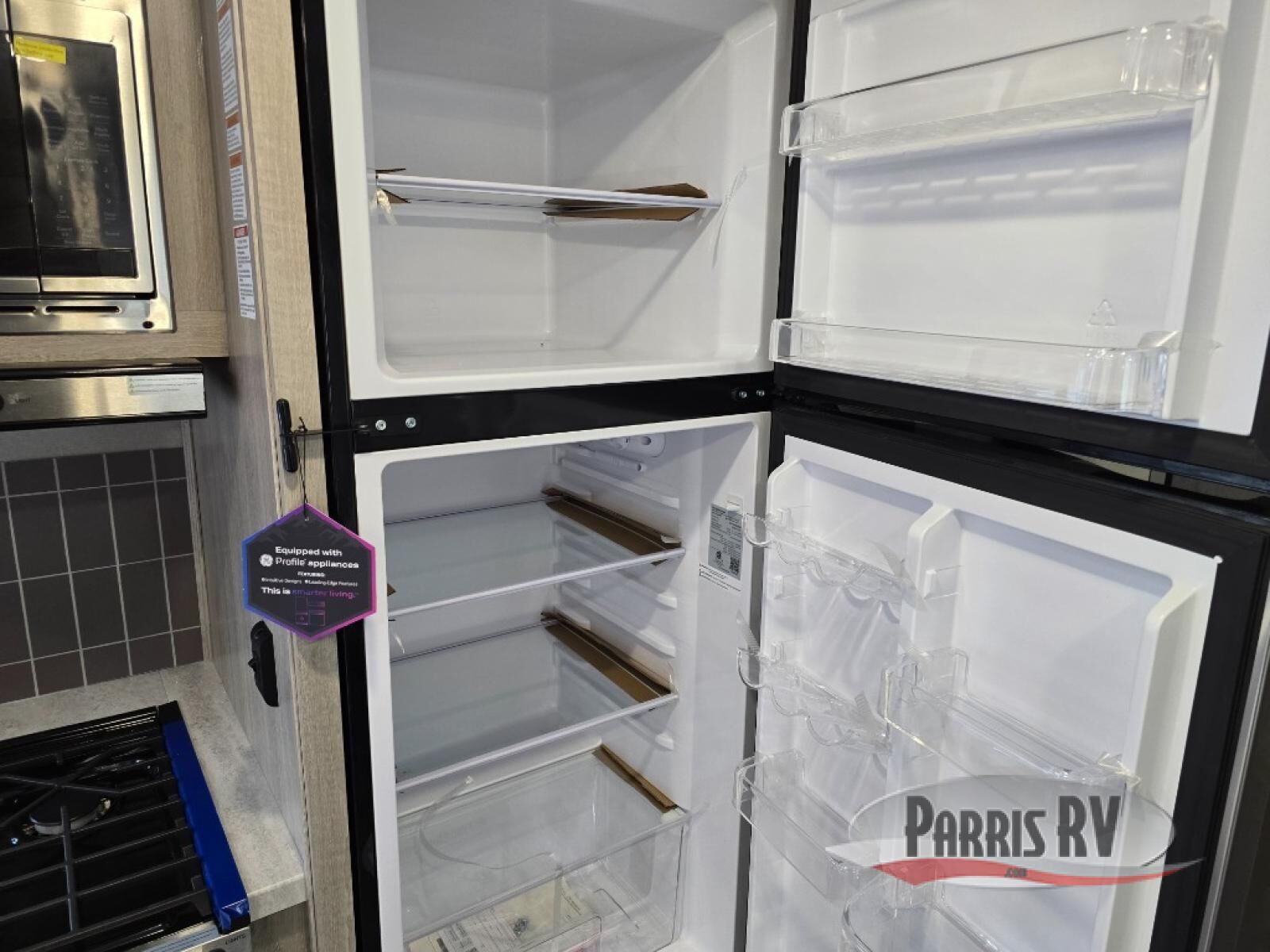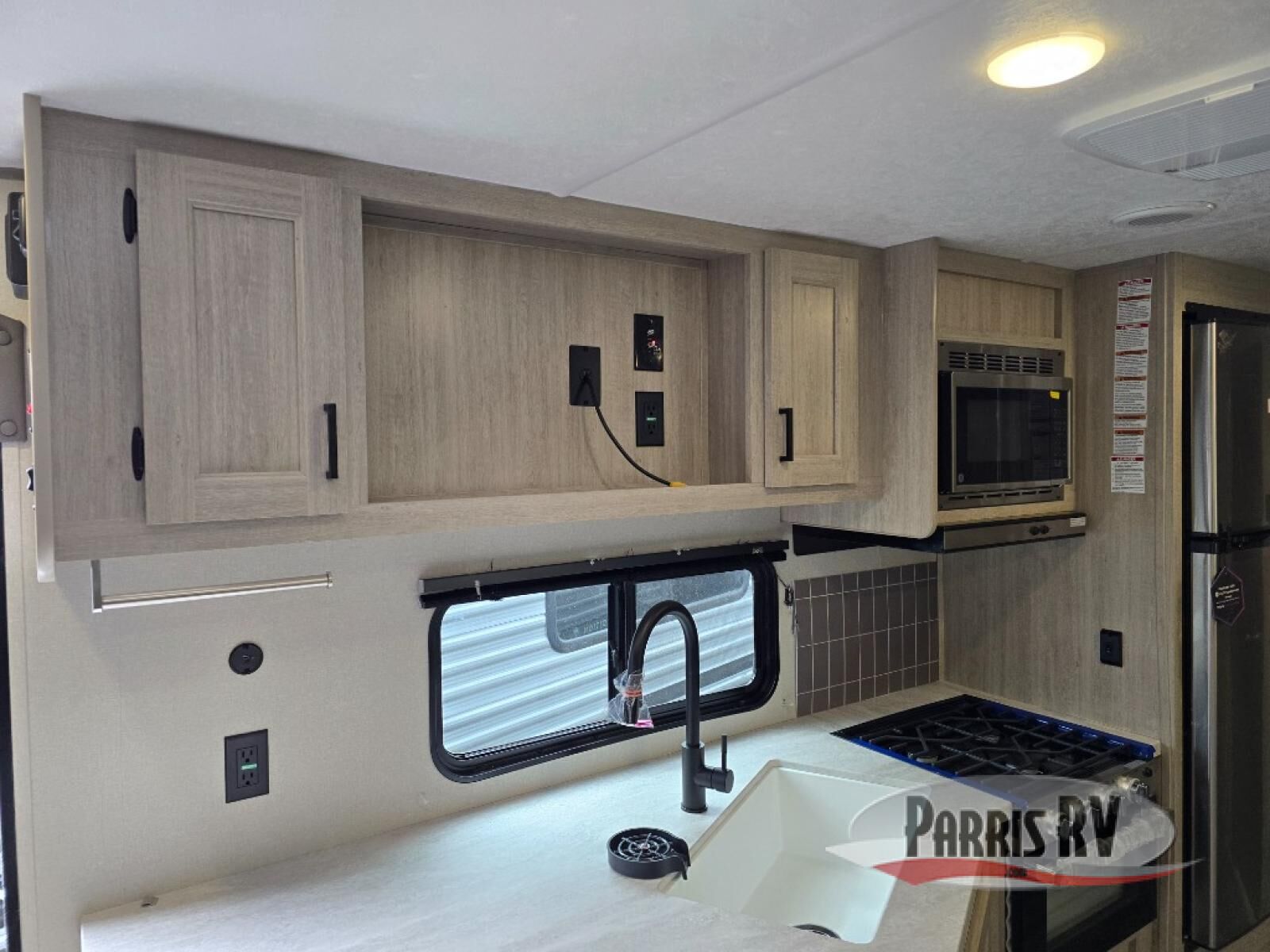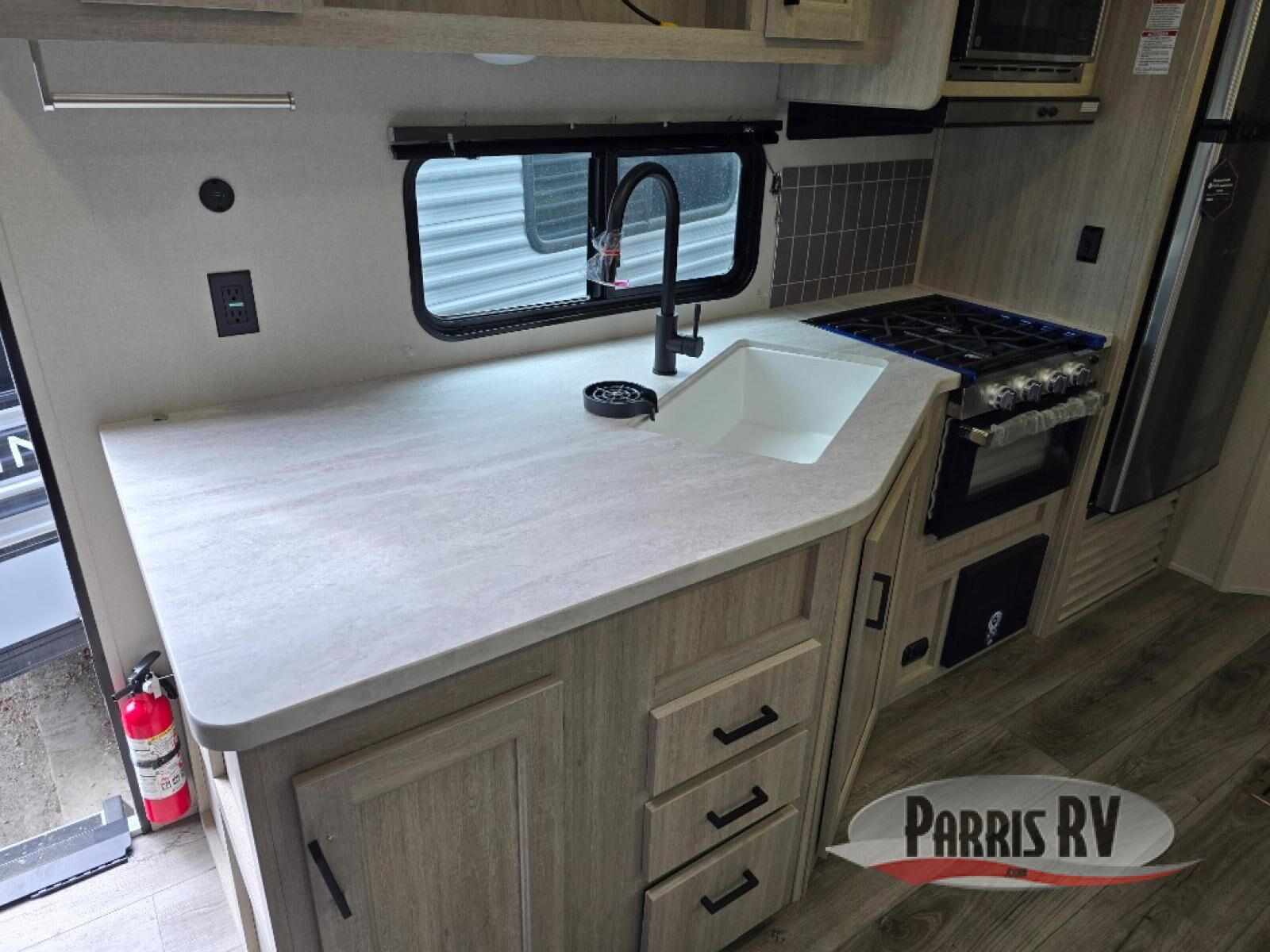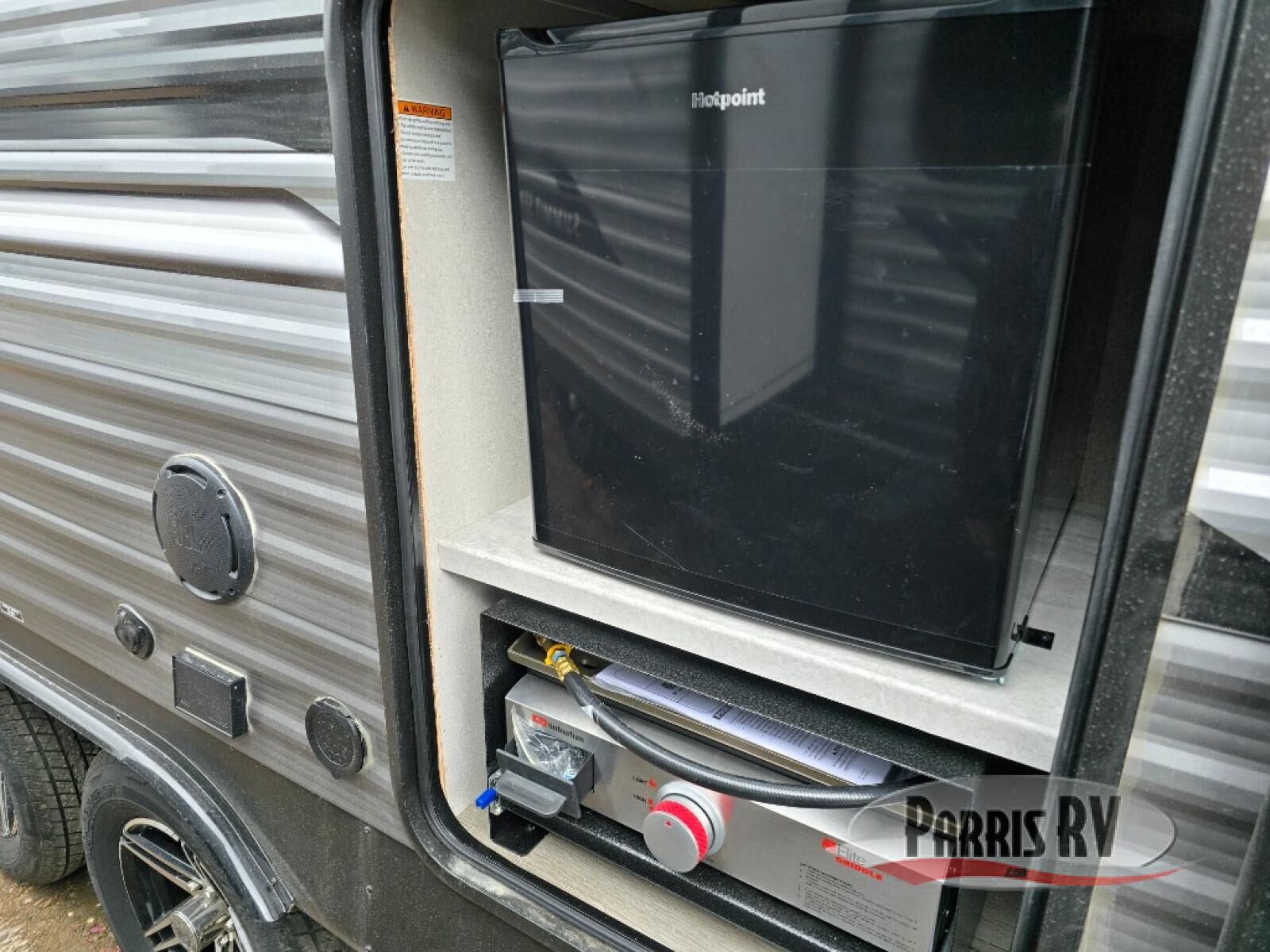 This half-ton friendly trailer is easy to pull and park, and is spacious thanks to the large slide out in the main living and kitchen area! You can dine at the booth dinette or choose the free standing dinette option, and the sofa offers drink holders for your drink when you're relaxing. The rear corner offers a full bathroom and a large wardrobe/pantry for the storage you need. The galley kitchen offers full amenities plus a breakfast bar where you can set out fresh fruit and cereal. And the 15' awning provides protection from the elements plus has the choice of multiple LED colors with the use of the remote.