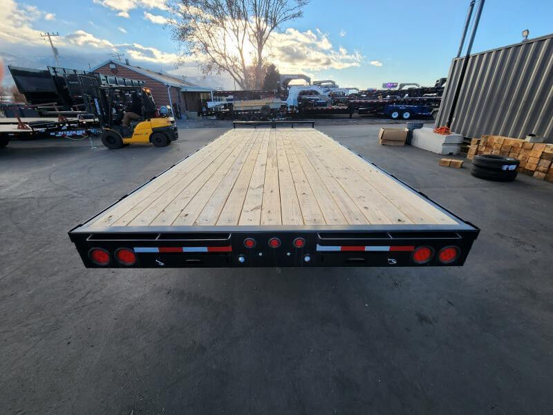 Stock #: PJ0038 Weight: 3,600 GVWR: 14,000 Payload Capacity: 10,400 Trailer Specs: 2-7,000 lbs. Axles Straight Deck w/ Rear Slide-in Ramps 6" Channel Tongue 2 5/16" Adjustable Coupler 5/16" Grade 70 Safety Chain w/ Clevis Hook 7,000# Top Wind Drop Leg Jack 6" Channel Frame 3" Channel Crossmembers 16" OC 2" Treated Pine Lumber Deck Stake Pockets Along Both Sides All Weather Wiring Harness 235/80R16 Radial Tires 10 Ply Black Powdercoat Electric Breakaway System w/ Charger