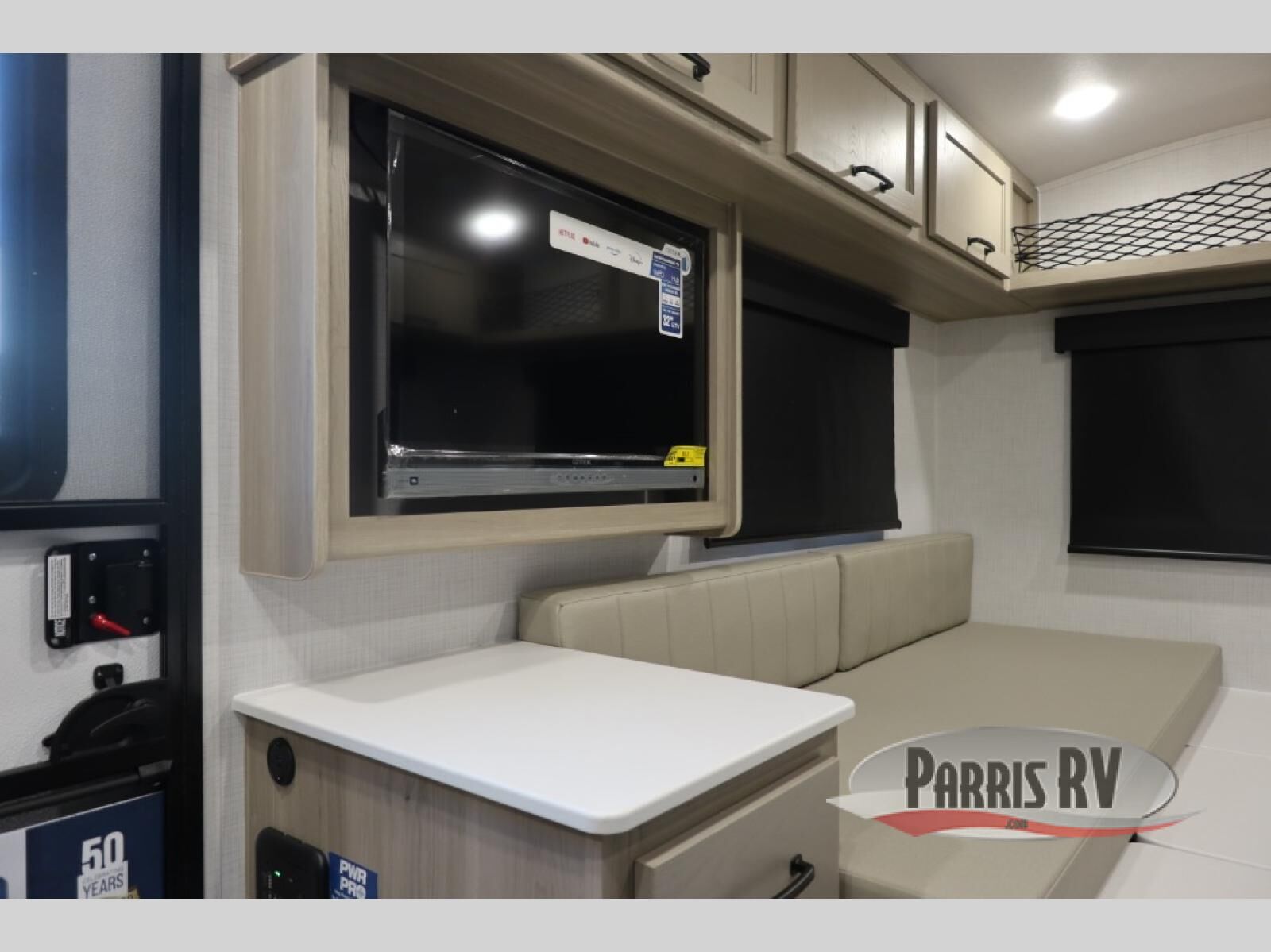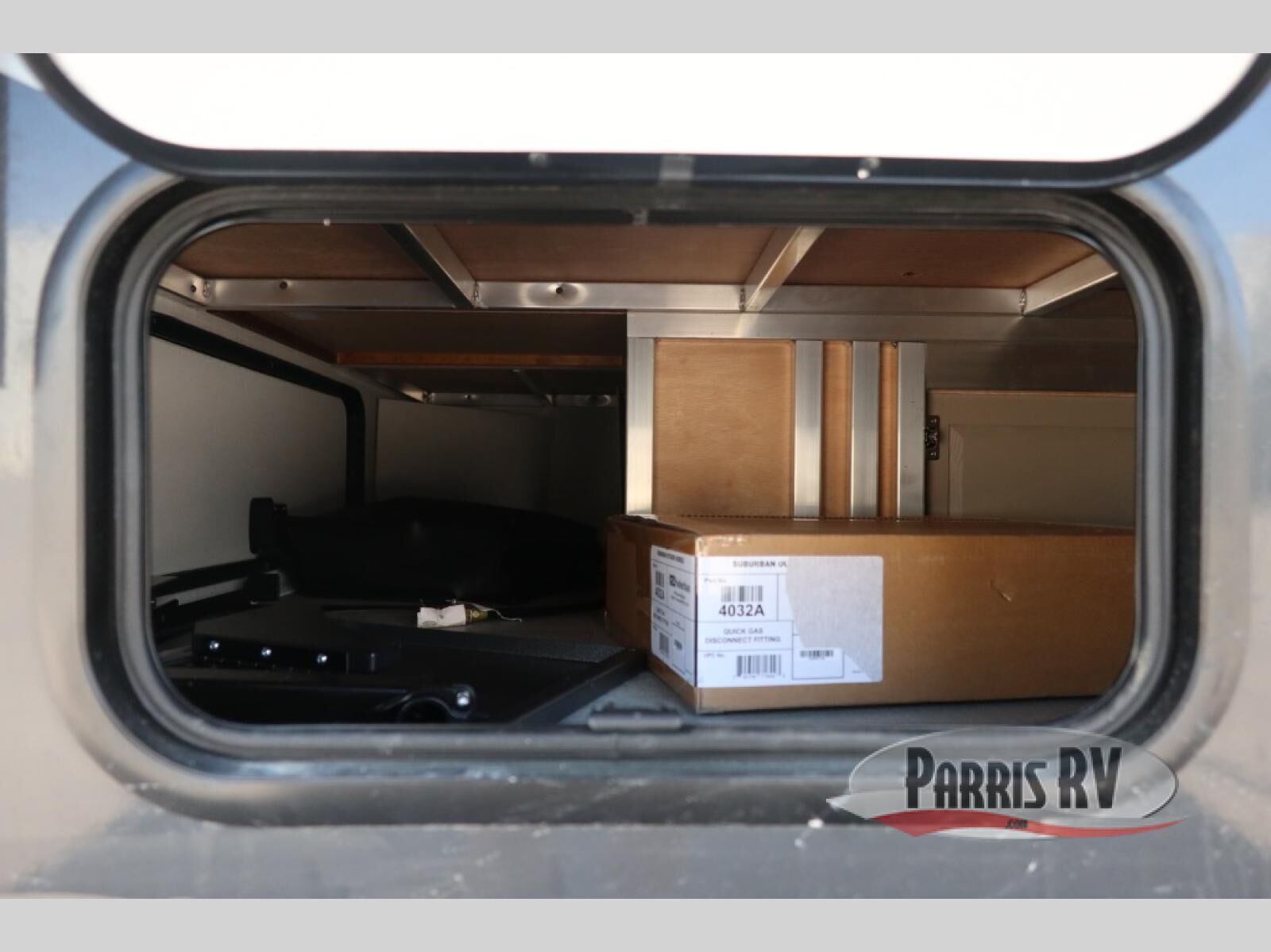 It won't be hard to find comfort in this travel trailer. It may be smaller on size, but it doesn't skim on features. The twin beds convert to a king-size bed for your comfort, and there is even a 32" 12V TV to enjoy in the evenings. The kitchen includes a three burner cooktop, a convection microwave, plus a 12V refrigerator for perishables. You'll find overhead compartments for your valuables and exterior storage for your hiking gear!