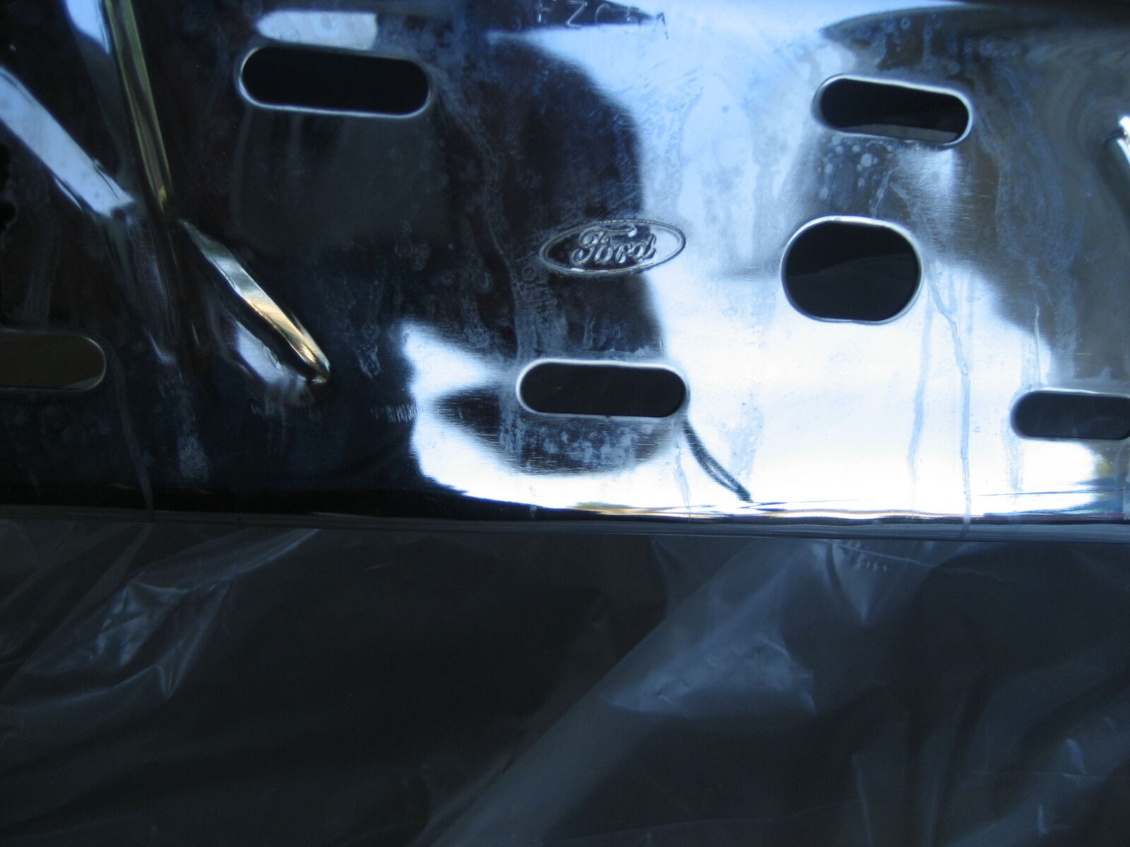 One New OEM 2015-2020 Ford Chrome right rear end W/Sensor hole. Perfect condition.