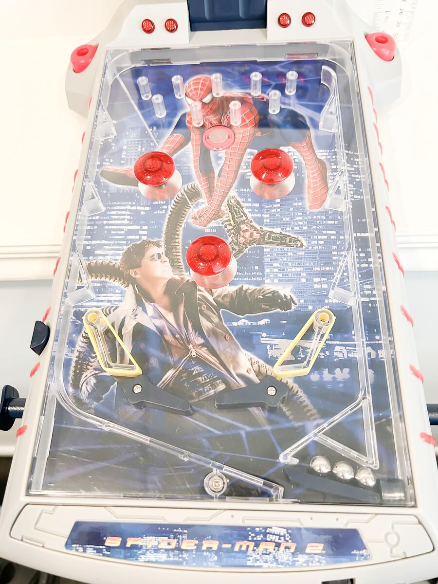 VenmoPretty cool spiderman 2 pinball machine in working condition, makes sounds and lights up. Battery operated. About 16 inches long by 9 inches wide.