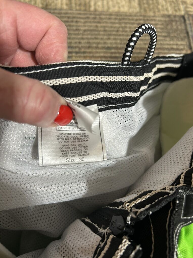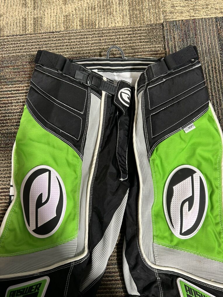 VenmoLike new condition men’s waist size 32 answer Motorcycle motocross pants in green, white and gray. In perfect condition. Clean smoke free home. No wear, stains or holes. Durable, lightweight and breathable. Cash or Venmo. Porch pick up from Alpine.