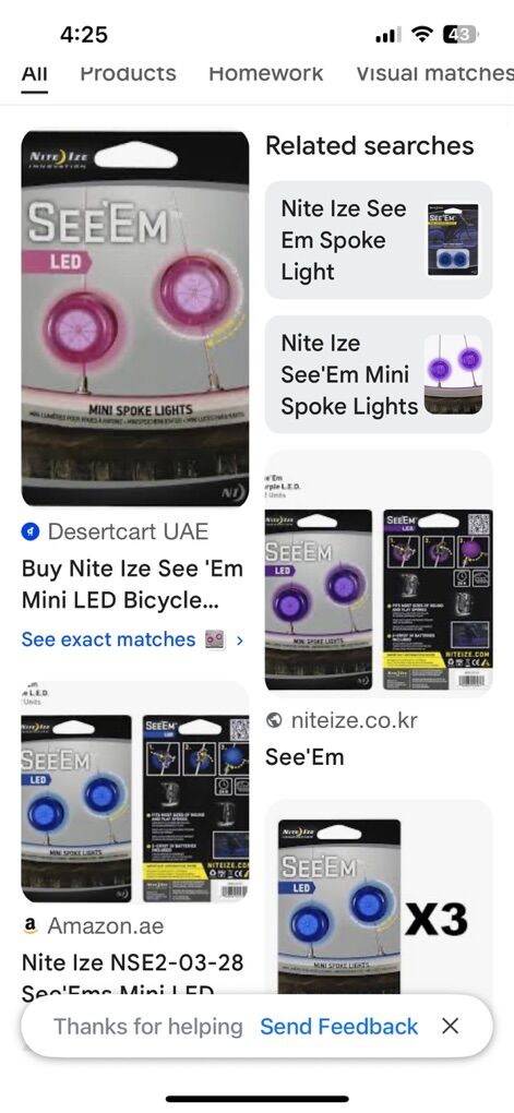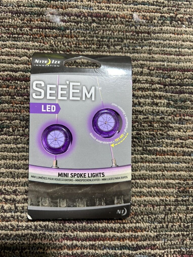 VenmoNew in the package from See’em brand bike accessories. Red and purple lights that you clip on this folks of your bike wheels. Helps others to see you as you’re riding at dusk and nighttime. Fun addition to kids or adult adults bikes. Clean smoke free home. Porch pick up from Alpine cash or Venmo.