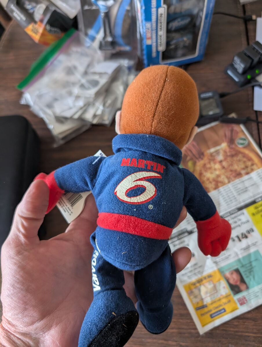 PayPalCapture the excitement of the race track with this collectible 6" Mark Martin Valvoline Ford Taurus doll. Decked out in the iconic blue of Martin's familiar ride, this doll is a must-have for auto racing enthusiasts and NASCAR fans alike. It's not just a unique piece of memorabilia, but a fun nod to the legendary career of one of the sport's most respected drivers. The doll comes complete with its original tag, making it a great addition to any collection or display. Its intricate detailing and realistic design pay homage to the speed and precision of Martin's driving style. Whether you're a long-time fan or a newcomer to the world of NASCAR, this doll is a fantastic way to celebrate the legacy of Mark Martin and the thrill of auto racing. 3 dollars or best offer. Will ship world wide. Seen on the hit show Storage Wars!!