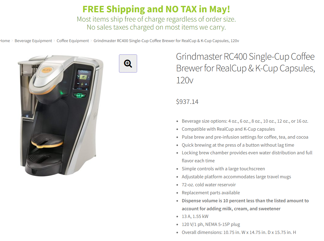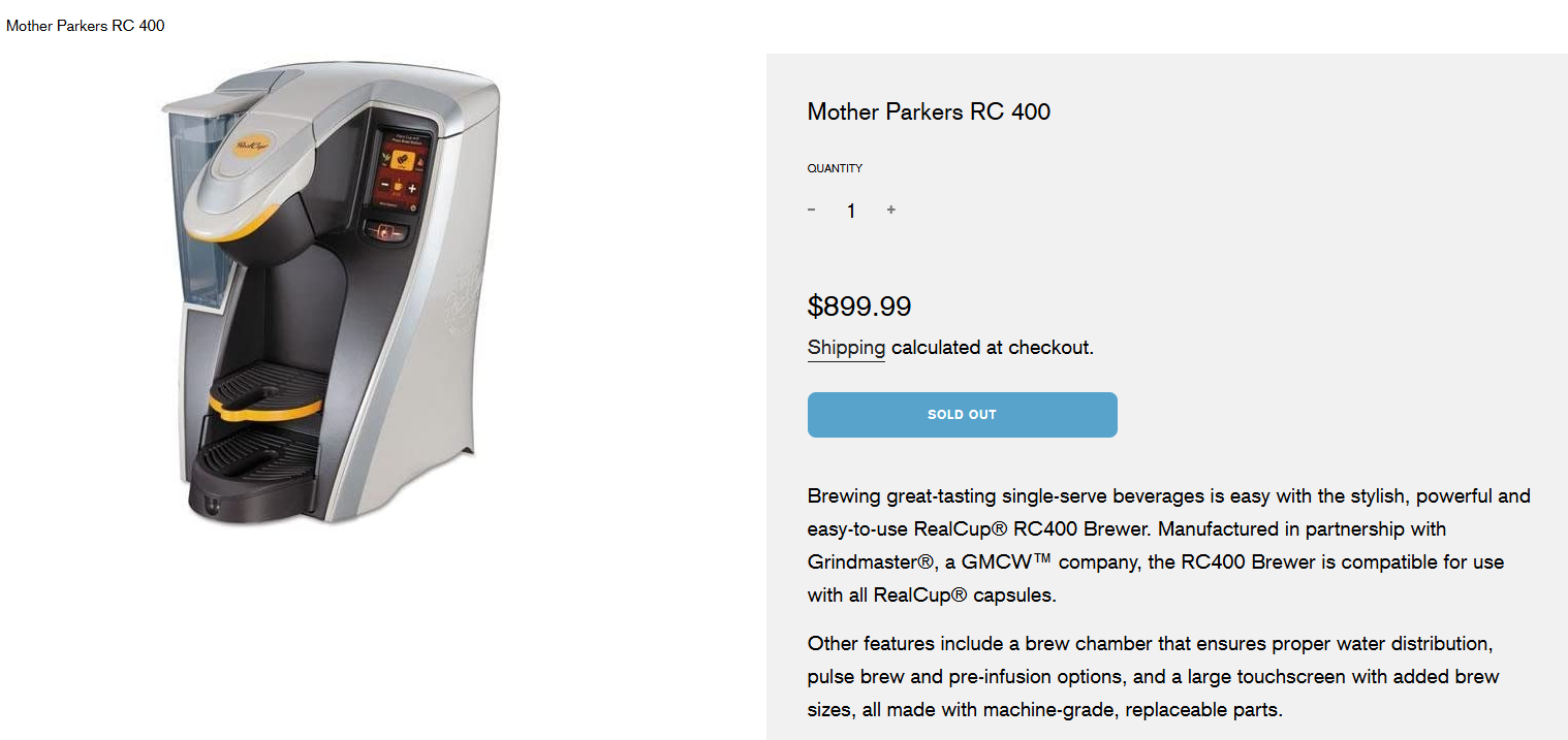 GrindMaster/Real Cup RC400 Single Serve Coffee Brewer.