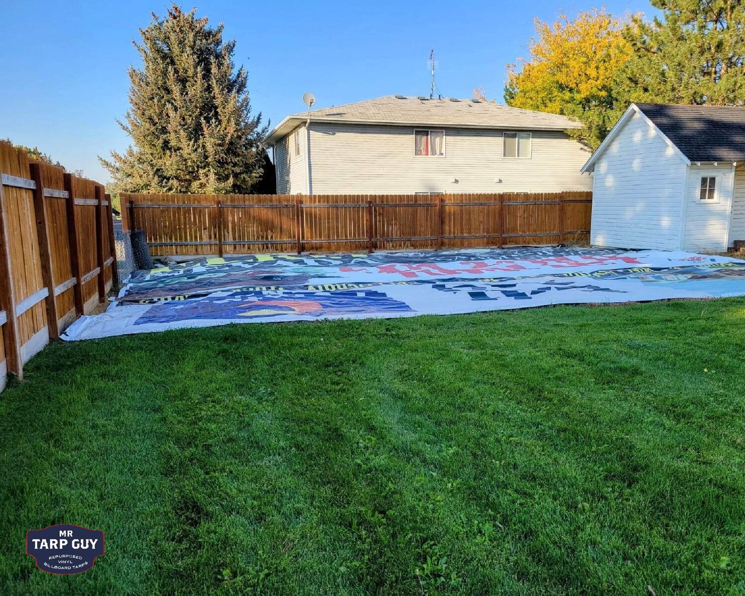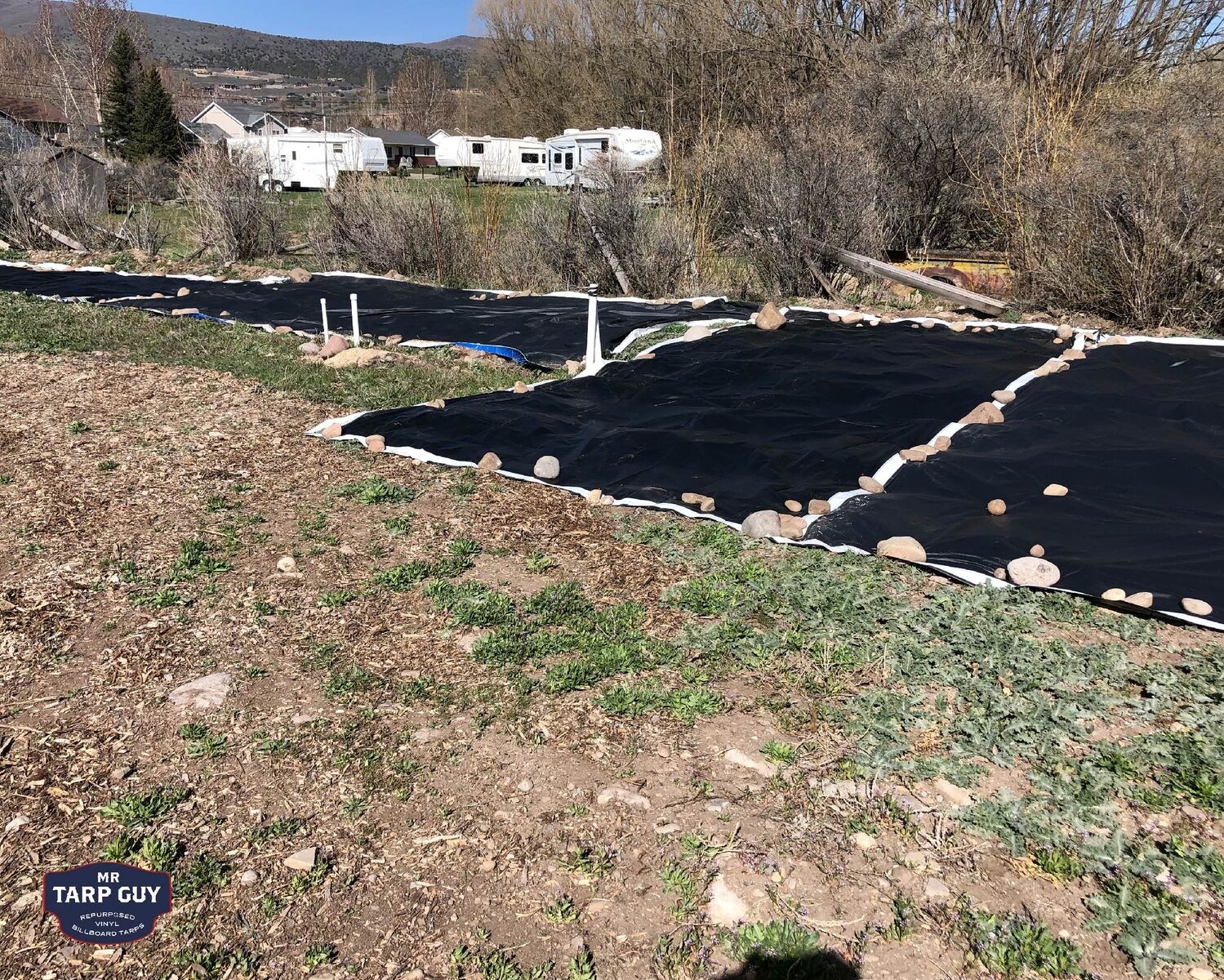 Heavy-duty vinyl from recycled billboards — I have these all over my yard and garden. Also tons of my customers and use and love these as weed barrier like the pictures here.