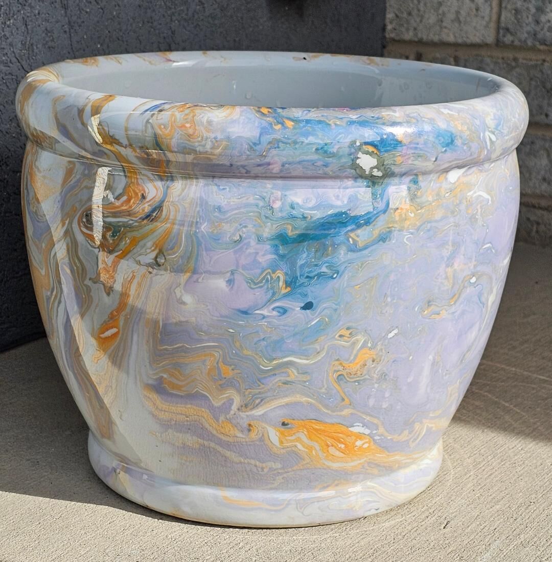 Large marbled pot: 12.5" diameter x 11" height - $20