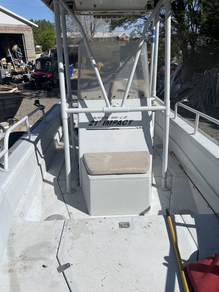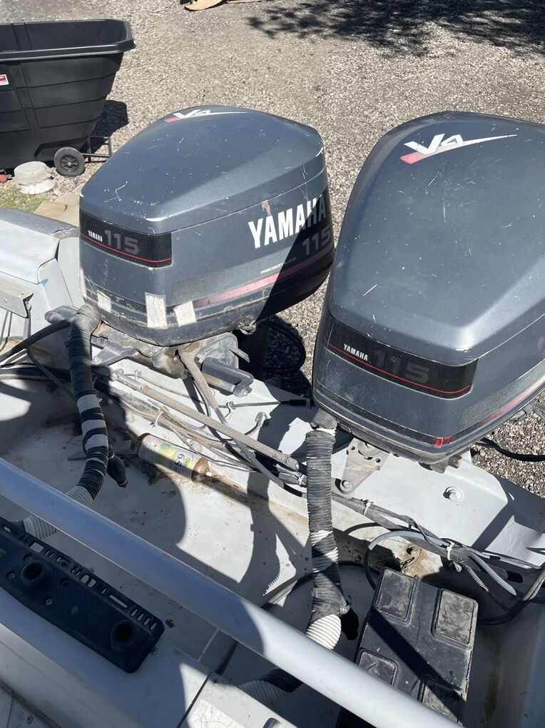 this is for a 1994 boston whaler impact police boat with twin yamaha 115 i hAVENT HAD IT OUT FOR A FEW YEARS BEEN IN COVERED STORAGE had both motor started 2 years ago and change one water pump on one motor drained and cleaned gas tank just to old to handle it any more is a great lake boat or offshore it is very heavy call for more info does not come with the trolling motor will need batterys will add more pictures soon