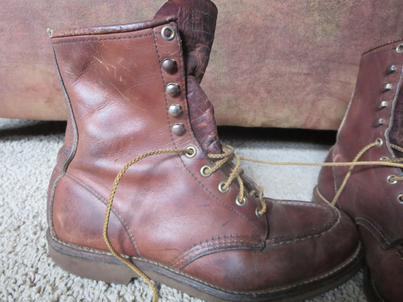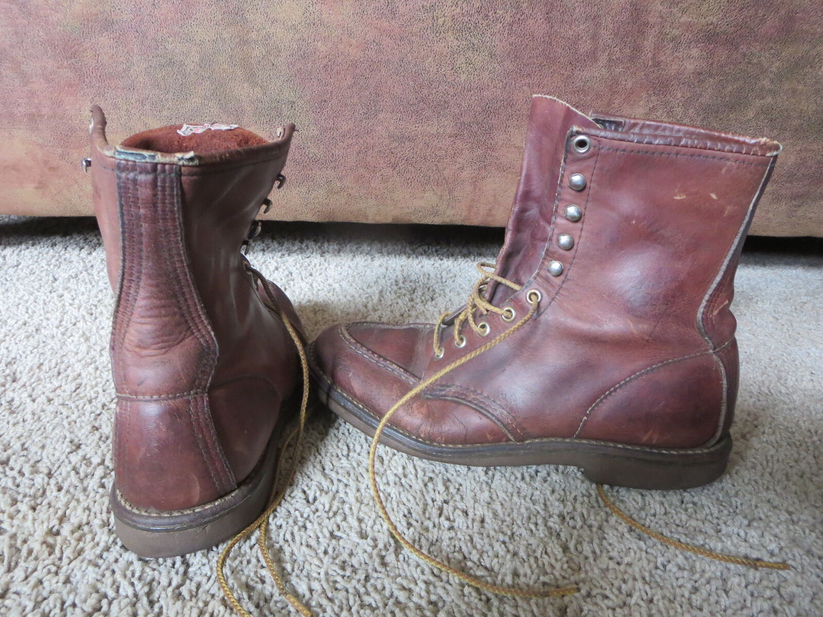 I have a pair of. VINTAGE Red Wing 214 Men's BROWN LEATHER MOC TOE Boots Size 9 For sale call or text onl thanks for looking D