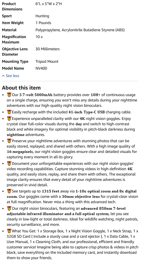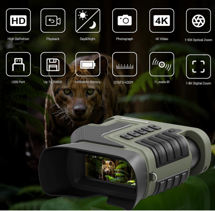 NEW IN BOX! Night Vision Binoculars, 4K Night Vision Goggles 1315FT 10X Optical Zoom 8X Digital Zoom Rechargeable NVG with 3'' Screen and 32GB TF Card Bird Watching, Outdoors, Photo, Video