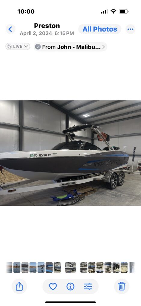 Malibu MXZ 24. Runs and Drives perfect. Seats 18 500 hours. Surf gates Ballasts Bimini surf board storage Etc, Etc, Etc, Loaded 15K in stereo and under water lighting. Beautiful. LOTS of sparkle!!! Priced below book value. (see attached) $79900.00 801-781-0052