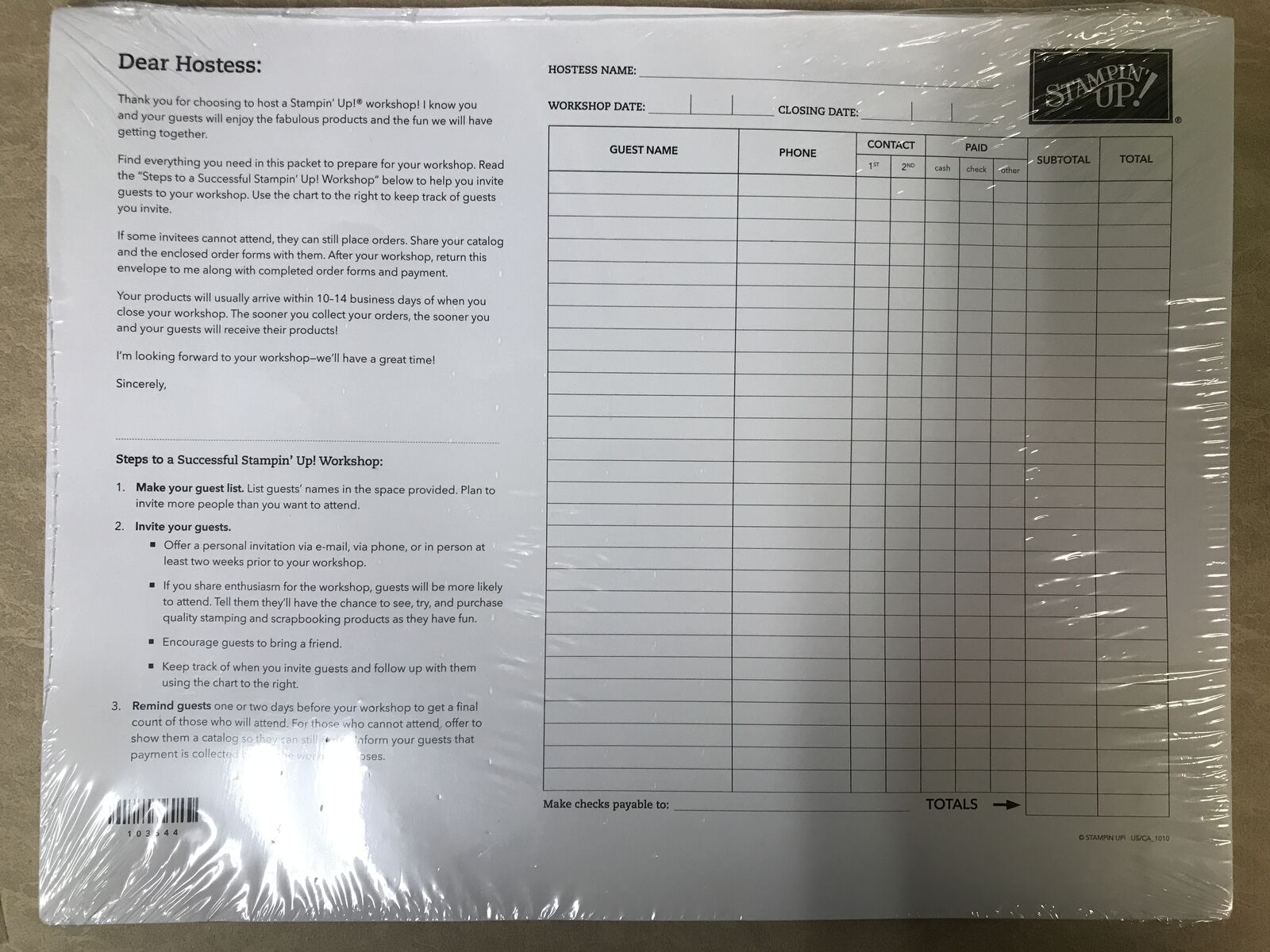 Stampin Up Customer Order Forms 50 Count & Guest Invite Postcards 100 count & 10 Dear Hostess envelopes.