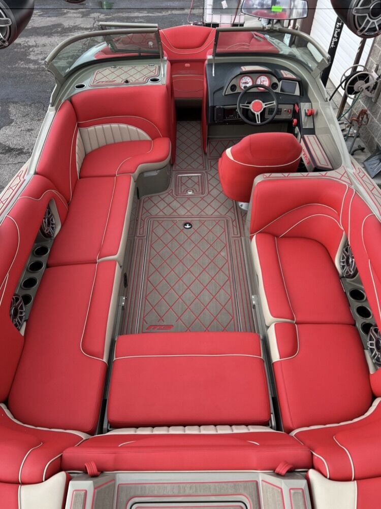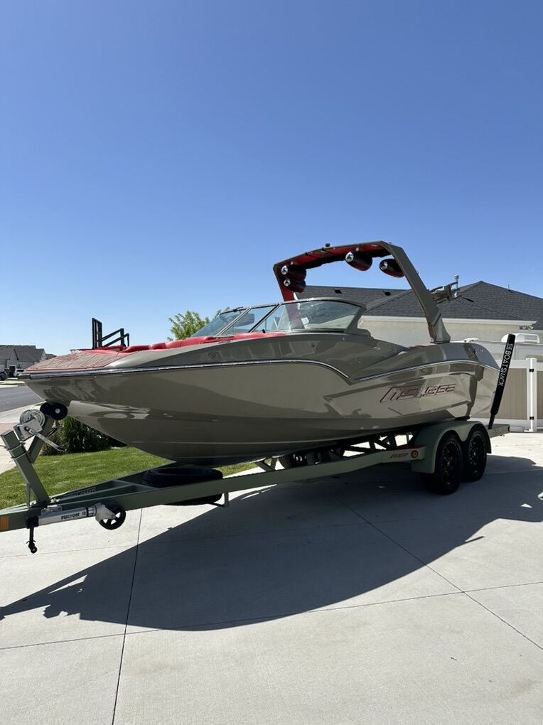 Our 23ft MB B52 Alpha is perfect for large groups and multiple families. Seats up to 16 people. The surf wave on this boat is amazing and will be hard to beat. This boat comes equipped with easy to fill ballast tanks and MB’s user friendly surf system which allow for fully customizable waves to match any skill level. All features are user friendly and easy to operate. Rental price includes lifejackets, ropes, and 3 items (youth or adult surfboard, wakeboard, tube, kneeboard, etc.). Additional items are available for rent.