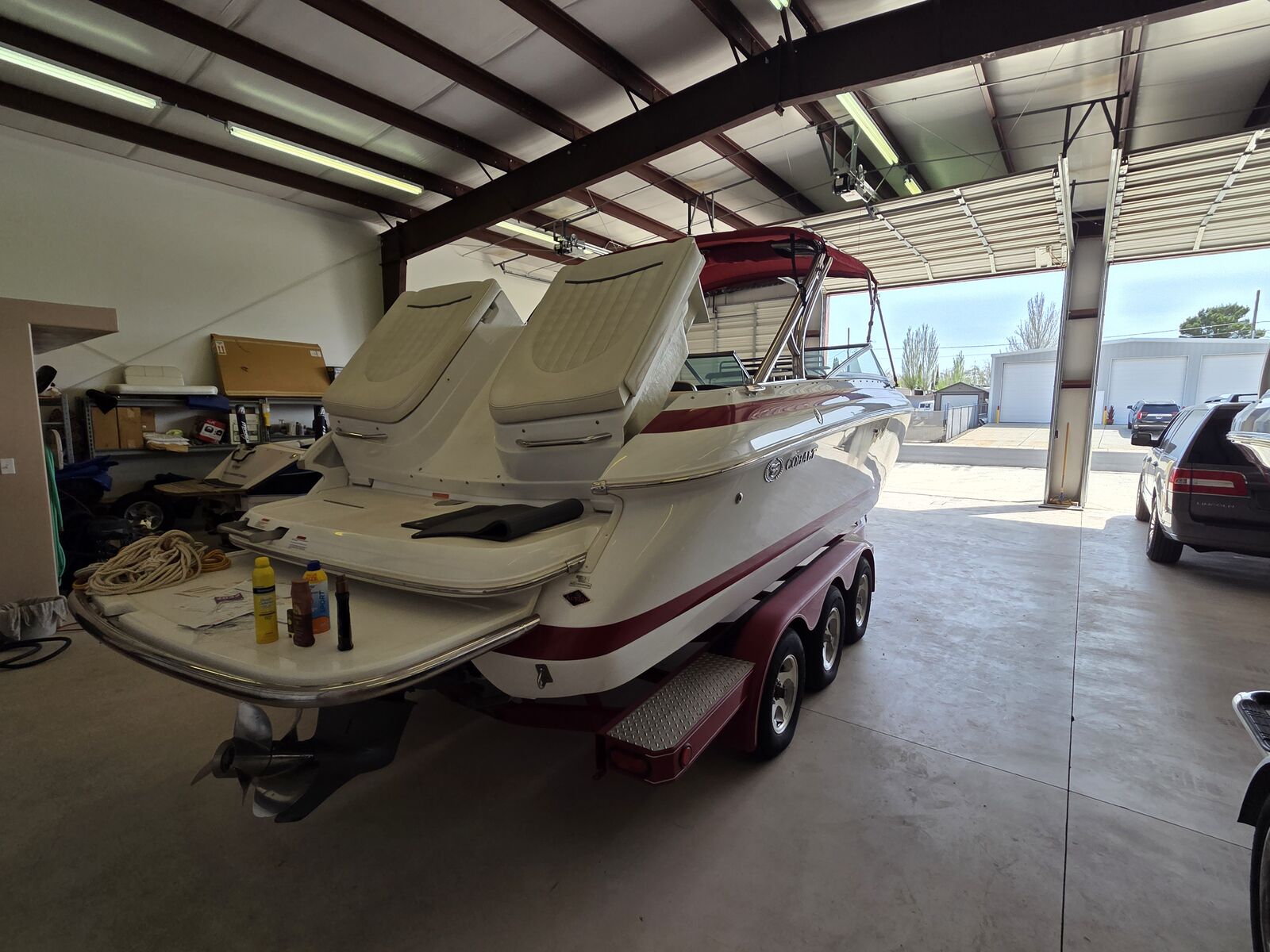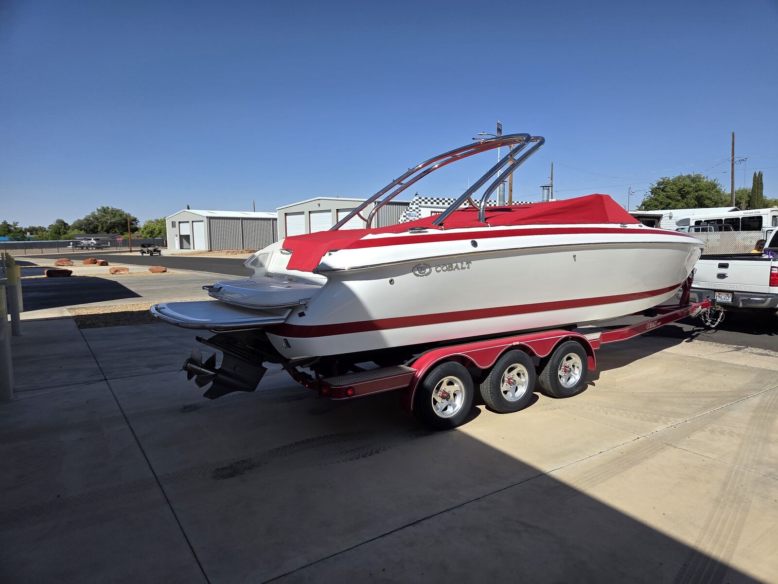 (6) New tires, 393 Hours, Stored inside year round, one family owned boat, Used Exclusively on Lake Powell, Volvo Penta 8.1 375 HP, Swim Platform Extented w/ Ladder, Stainless Steel AArich w/ Bimini Top, Docking Lights Stainless Steel, Transom Tilte Switch, Bow Cushion insert, Trim Tabs, Premium Speaker Package, Oringal List Price $100,000