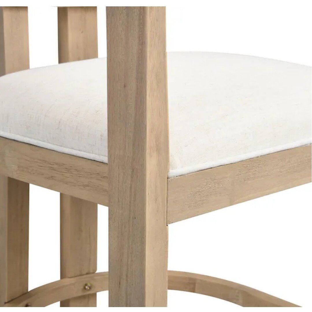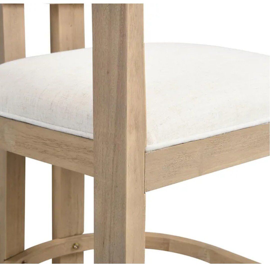 These 26 in. seat height counter stools blend medieval design with modern style, offering a timeless yet contemporary feel. Upholstered for comfort, the stools feature a durable rubber wood frame in a natural finish that contrasts beautifully with the soft beige seat. A convenient footrest adds extra comfort, making these stools perfect for long gatherings. The (set of 2) ensures a cohesive look for your counter space, balancing elegance with practicality. Ideal for kitchen islands, bar areas, or dining spaces, these stools are both sturdy and stylish, adding a refined touch to any modern or transitional interior.