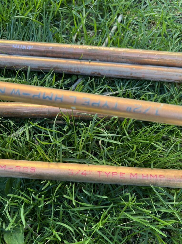 4 10’ copper tubing, 3/4” inch diameter 1 10’ copper tubing 1/2” diameter