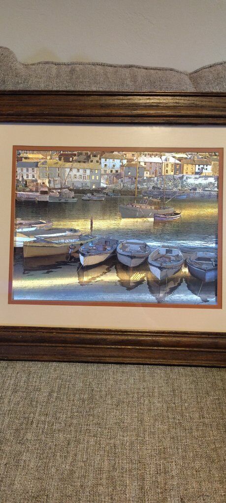 Really cool and very uniquely made is this vintage tin foil print by FJ Warren and is in pristine condition this picture literally comes alive and would look good in any setting and would definitely be noticed by its vibrant colors and rays of glow. and is approximately 24- 1/2" wide x 20-1/2 Tall with the frame