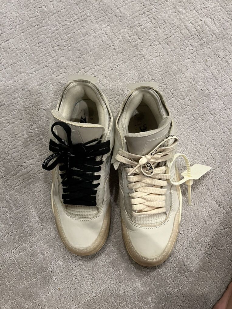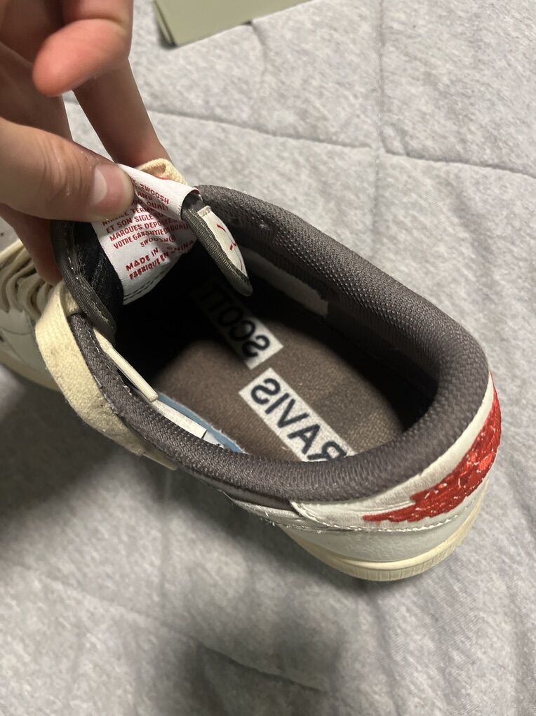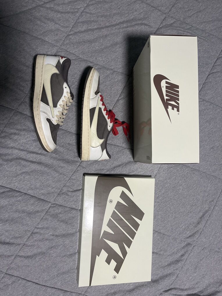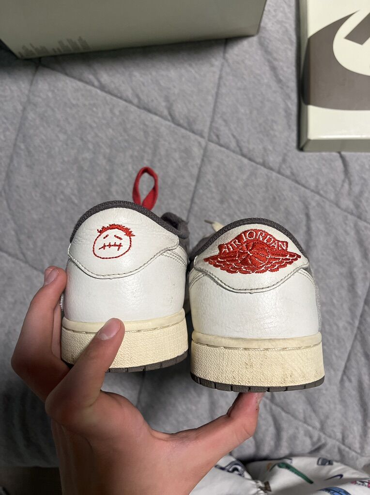 Off white Jordan 4 real just a little used and they had a stain it them and I Tried to get it out the best I could you can hardly tell it’s there even if your looking right at it Size 8 men’s 9.5 women’s Travis Scott reverse mocha lows size 8.5 like new