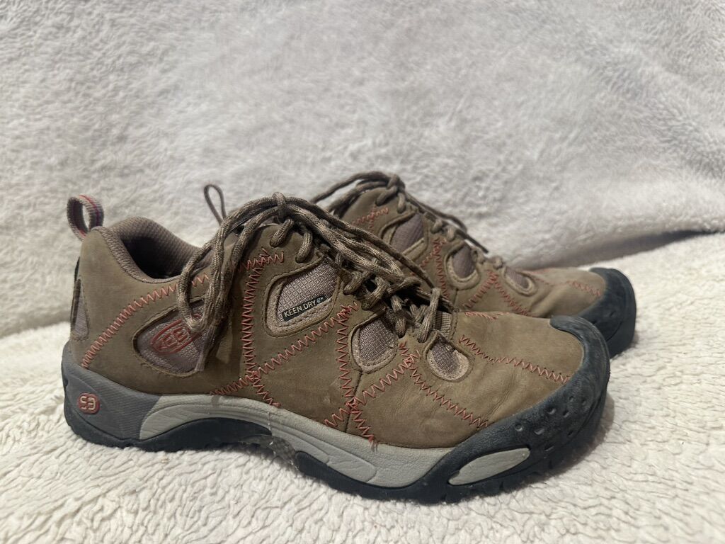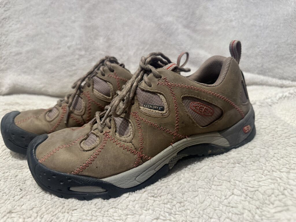 Keen women’s size 8, beige leather and textile waterproof hiking shoes. These are in good condition, see photos for details. I take cash or Venmo, but cash is preferred. Text is best. 801-201-4446. Check out my other ads for additional sizes and styles.