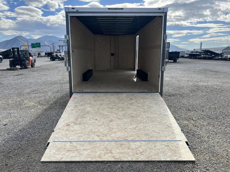 Stock #: HM3033 Trailer Specs: Color: Charcoal .030 Bonded Aluminum Overall: Length: 24'4" Width: 8'6" Height: 9'" Interior/Bed: Length: 20' Width: 8'1" Height: 7'0" Door/Ramp: Rear Spring Assist Ramp Door (Width: 92" x Height: 78") Weight: 3,605 lbs. | GVWR: 9,990 lbs. | Payload: 6,385 lbs. Axle(s): (2) 5,200 lb. Dexter Torsion Electric Axle w/ EZ Lube Hubs Tire/Wheel: ST225/75R15 | Load Range D Coupler: Type: Bumper Pull | Size 2-5-16" | 7-Way 12V Connector 16" OC Tube Vertical Posts | 16" OC Crossmembers | 16" OC Tube Roof Bows 3 Year Limited Warranty Trailer Includes Following Options: 12" OC Crossmembers Standard Features: 2"x6" Tube Main Frame Adjustable Height Cast Coupler Square Tube 8K Dropleg Jack 1-Piece Aluminum Roof 24" Starbright Stoneguard 3/8" PlexCore Sidewall Liner 3/4" PlexCore Flooring 36" Side Entry Door w/ Flush Lock & Deadbolt (4) 5,000# Recessed D-Rings 12v Interior LED Dome Light 12v Exterior LED Lighting Smooth Aluminum Radius Fenders Undercoated Chassis Common Addons: Wall Mounted Spare Tire - $180 10 ft. E-Track Stick Recessed 2,500# D-Ring WASATCH TRAILER SALES - LARGEST TRAILER SELECTION IN UTAH Springville: (801) 528-1581 | 1180 S 2000 W, Springville UT, 84663 View More Inventory: www.wasatchtrailer.com